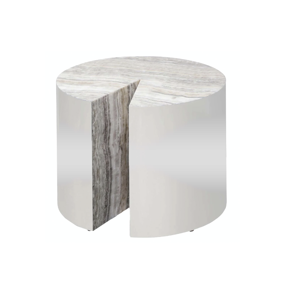 Custom Onyx and Stainless Steel Wrapped Side Table