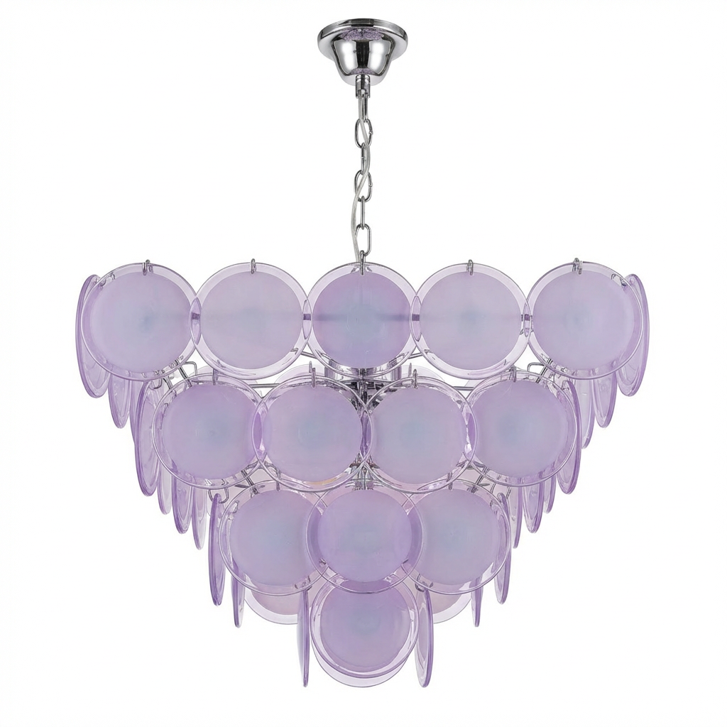 Vintage Murano Glass Disc Chandelier in Lavender, 1970s