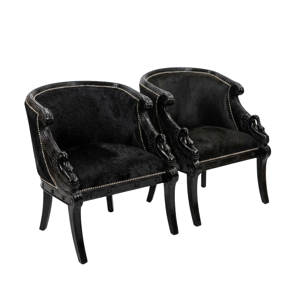 Pair of Hair-On Cowhide Barrel-Back Club Chairs