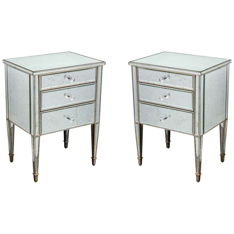 Pair of Neoclassical 3-Drawer Beveled Mirrored Nightstands