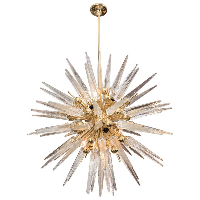 Stunning Clear Murano Glass Spike Sputnik Chandelier