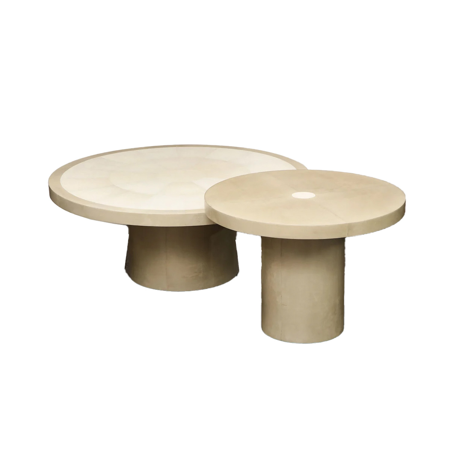 Custom Set of Tall & Low Shagreen and Parchment Tables with Bone Trim