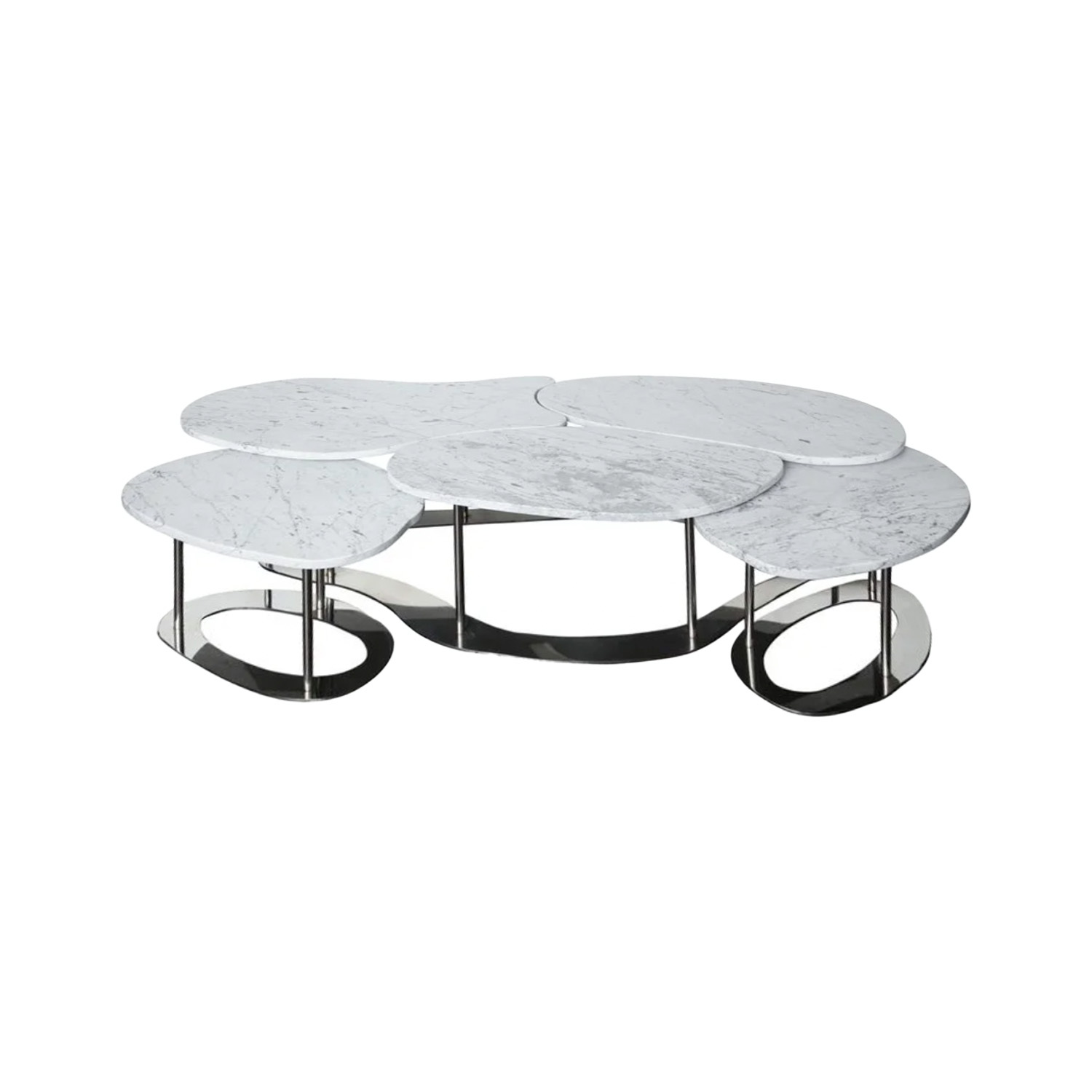 Custom Set of 3 Free-Form Stainless Steel and Marble Cocktail Table