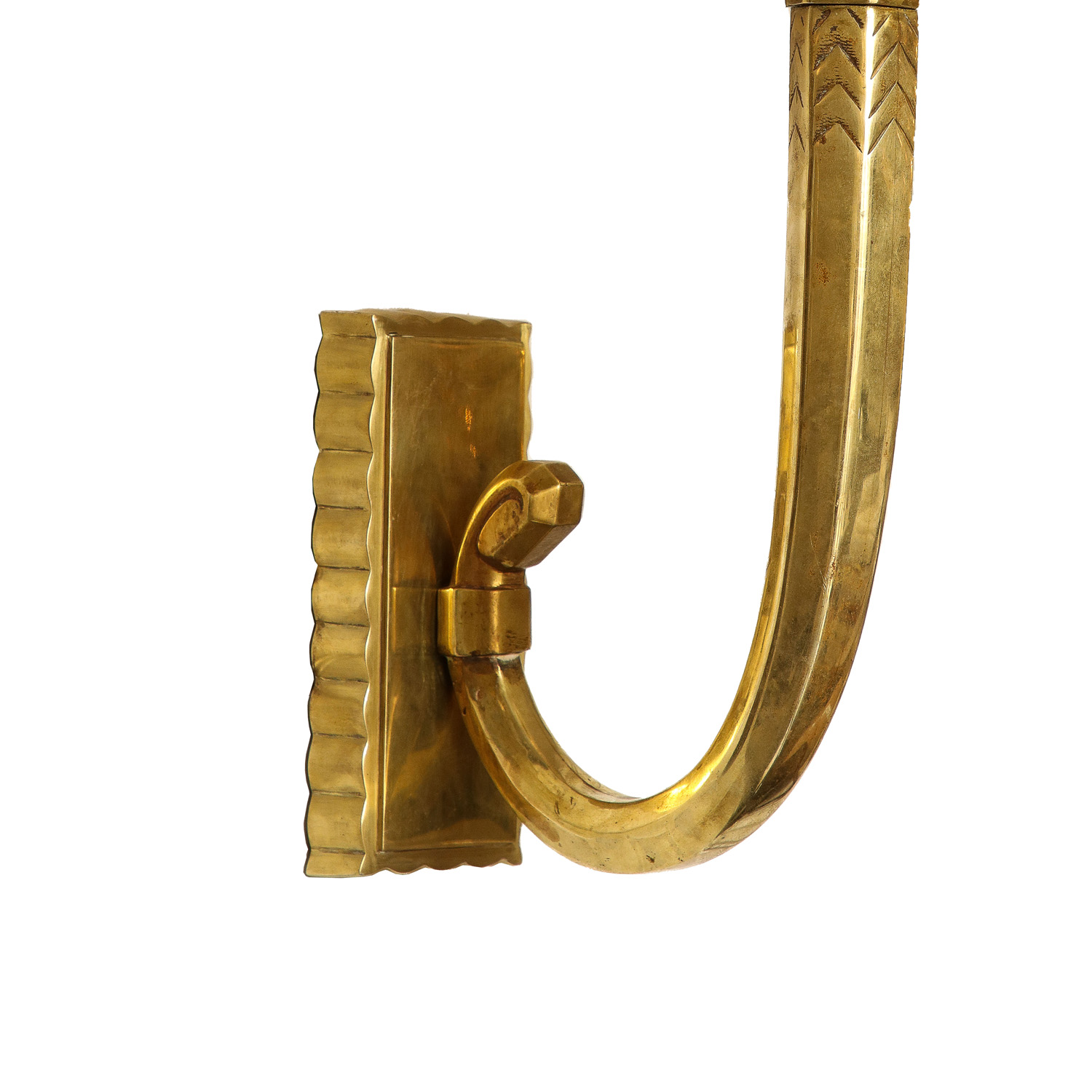 Art Deco Pair of Etched Glass and Bronze Cornucopia Sconces 1930s