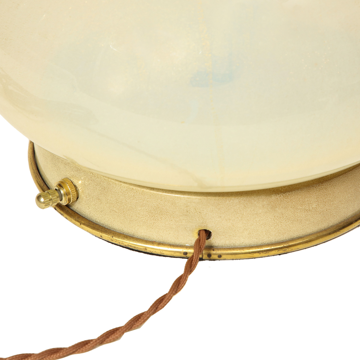 Green opaline Murano glass table lamp with brass base and hardware. Italy 1960's.