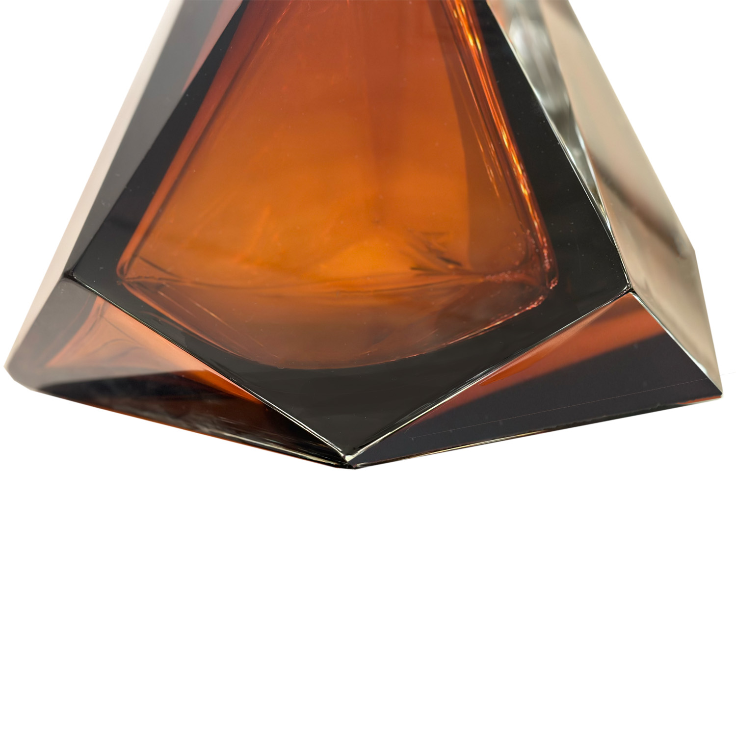 Grand size pair of faceted table lamps in Amber color Murano glass with brushed brass hardware. These make a dramatic pair of bedside lamps or a chic and sculptural stand alone table lamp. Alternate colors are available. Please inquire with Venfield for options and lead times. Lamp shades not avialable.
