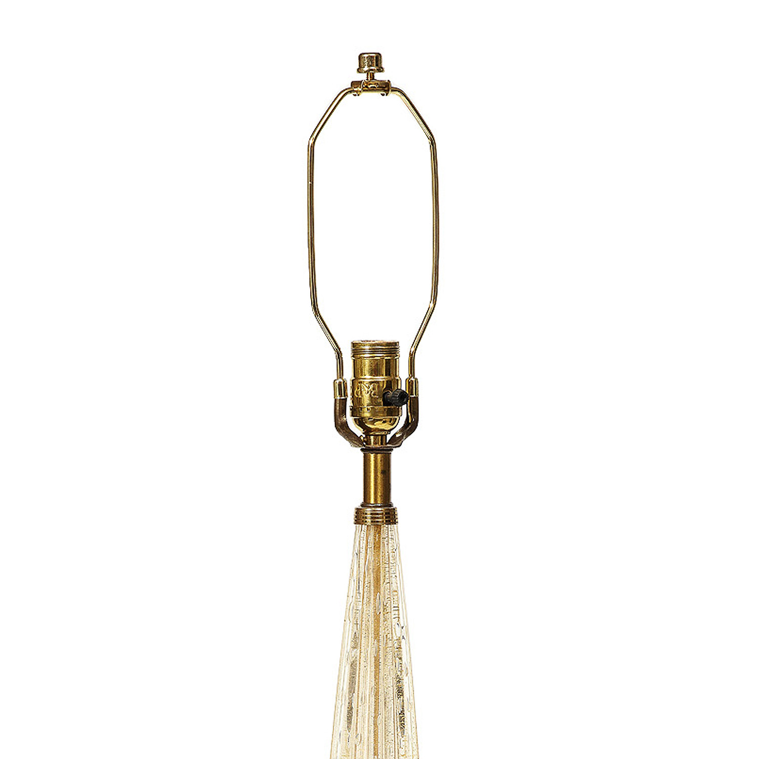 Hand-crafted Murano glass table lamp with Rigadin and Bullicante decoration and Avventurina throughout. Base banded in brass. By Barovier & Toso, Italy 1950's.
