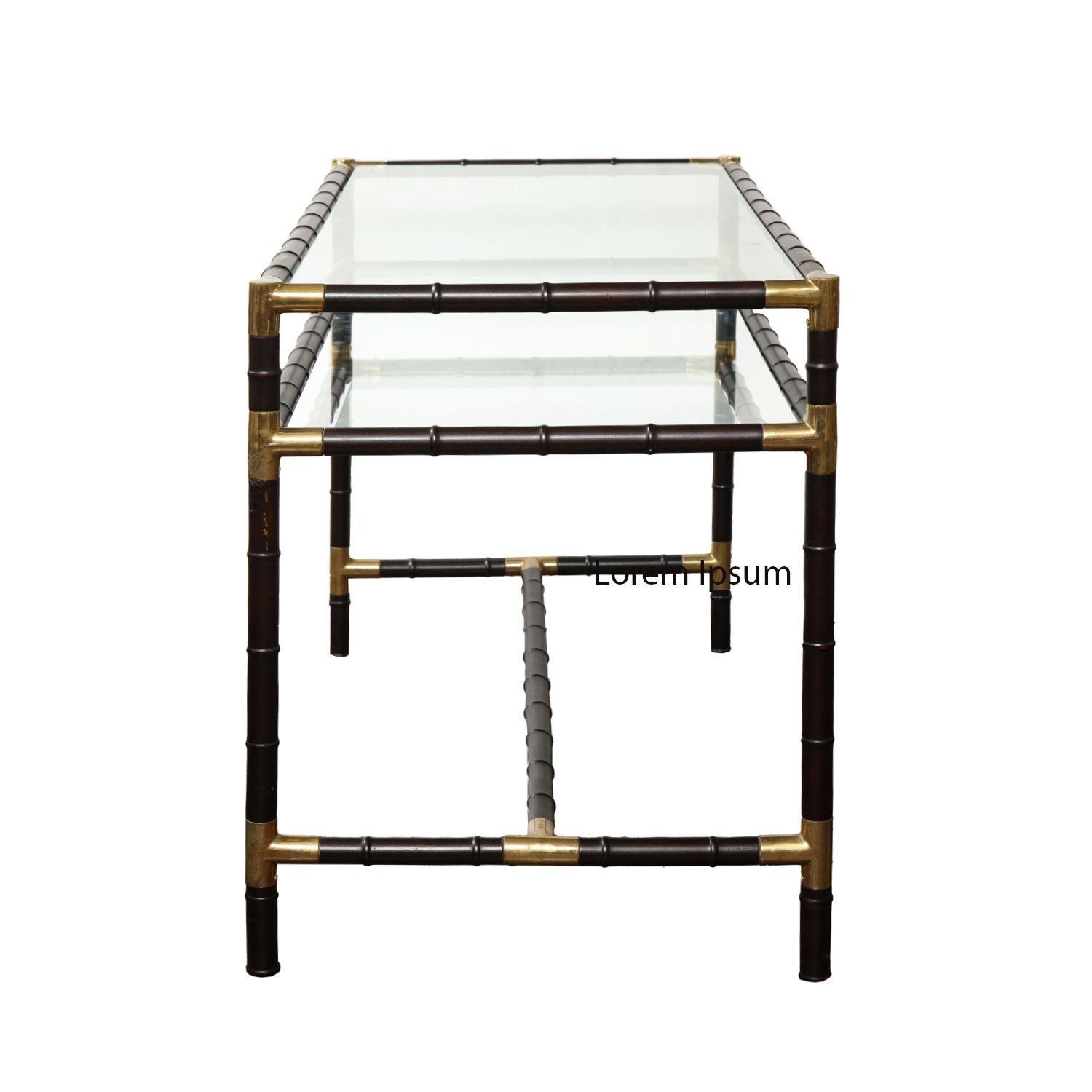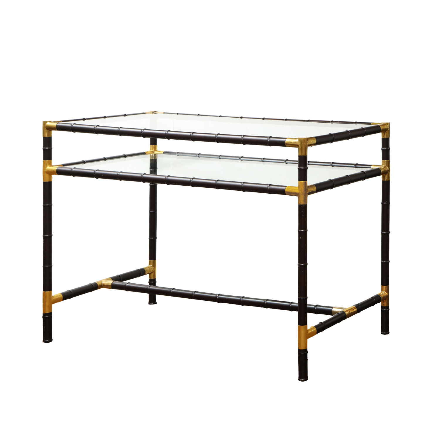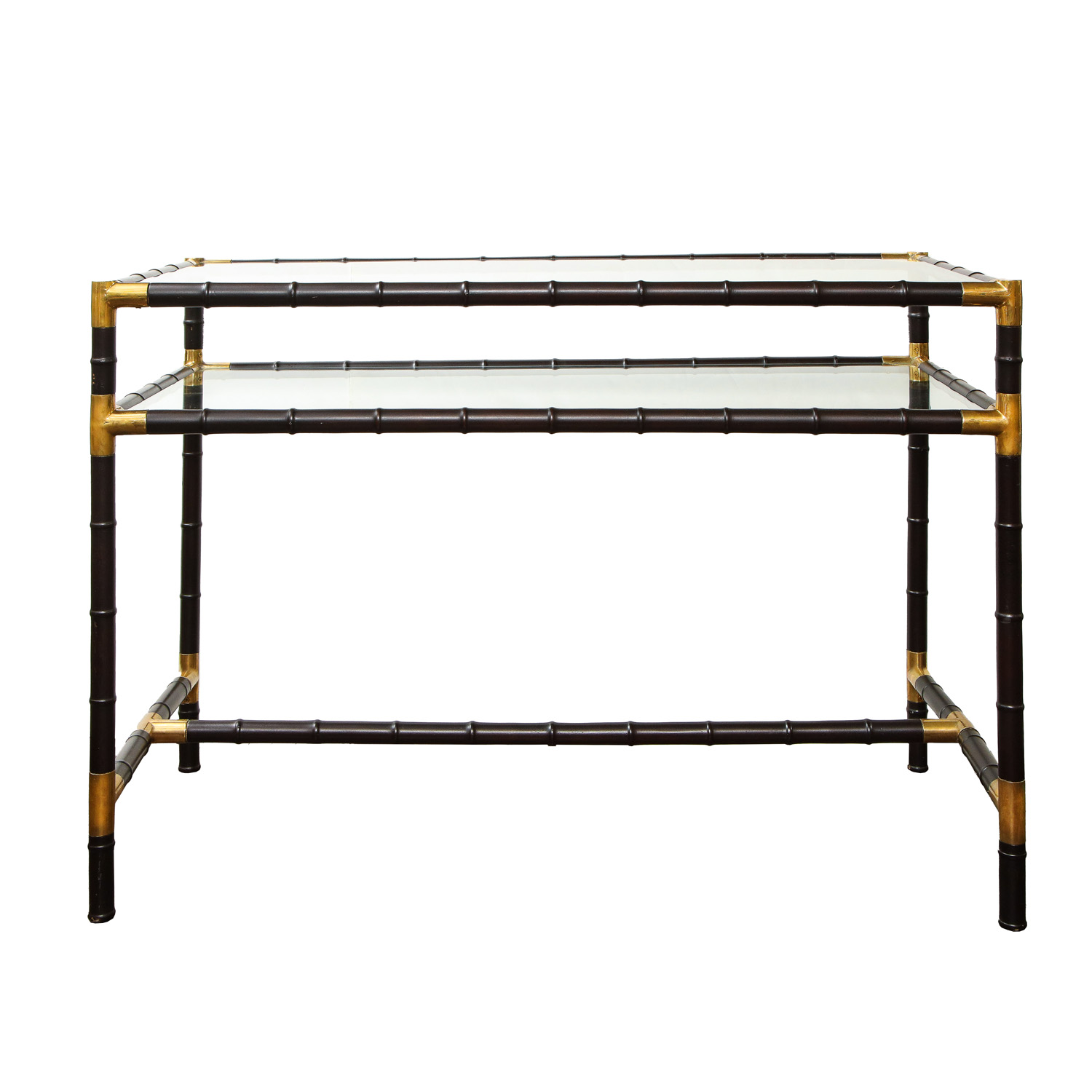 Rare and elegant faux bamboo table in steel and glass with brass accents by Billy Haines, American 1970. The table has beautiful lines and an impressive understated aesthetic. The size, shape and scale make it a perfect console or entry table. Only a few of these special tables ever made by the renowned Hollywood interior designer. This is a rare opportunity for collectors and fans alike to own this iconic piece.