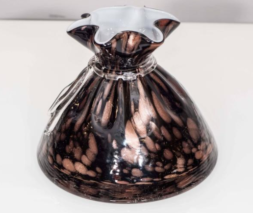 Black and bronze Murano glass vase. A lovely decorative piece shaped like a sack with a tie.