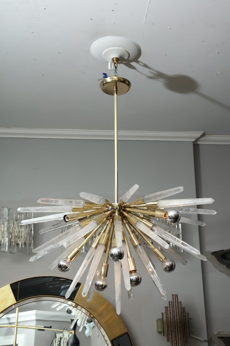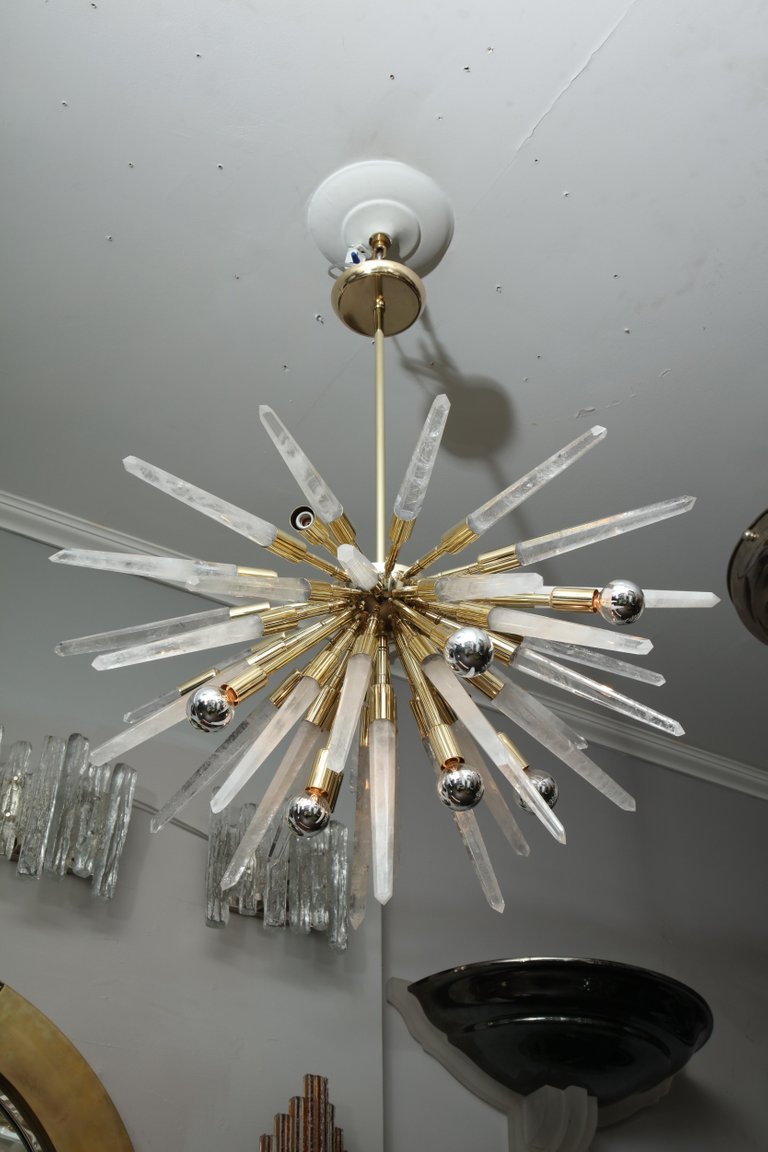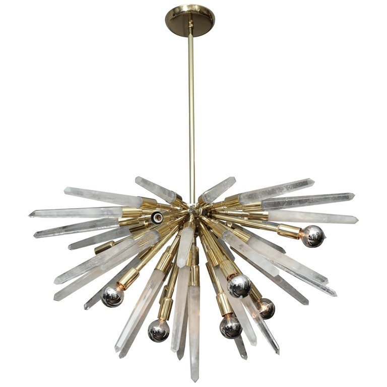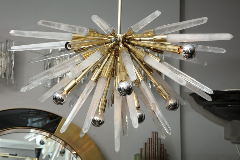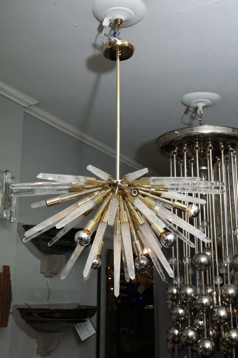 Custom Brazilian rock crystal half Sputnik chandelier. Currently out of stock but available for custom order. Customization is available in different sizes and finishes. Please inquire about estimated production lead times.