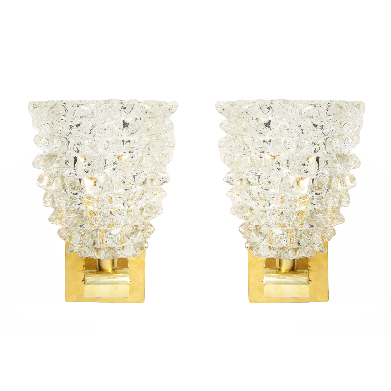 Pair of Murano clear glass and brass "Rostrate" sconces in the style of Barovier. Currently out of stock but available for custom order. Please inquire about estimated production lead times.