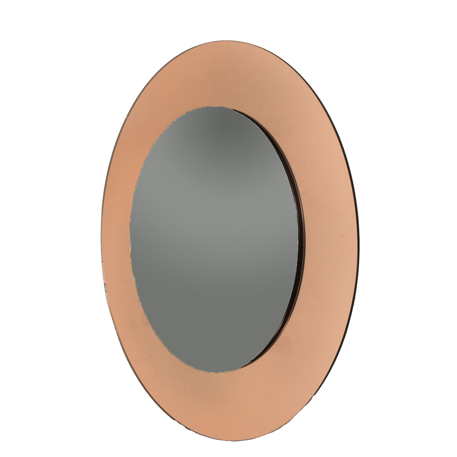 Chic Round Copper & Smoked Stacked Mirror 1970s