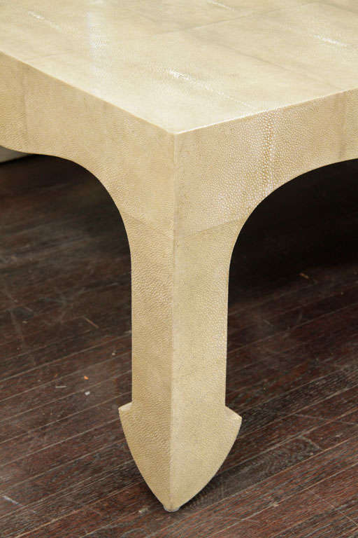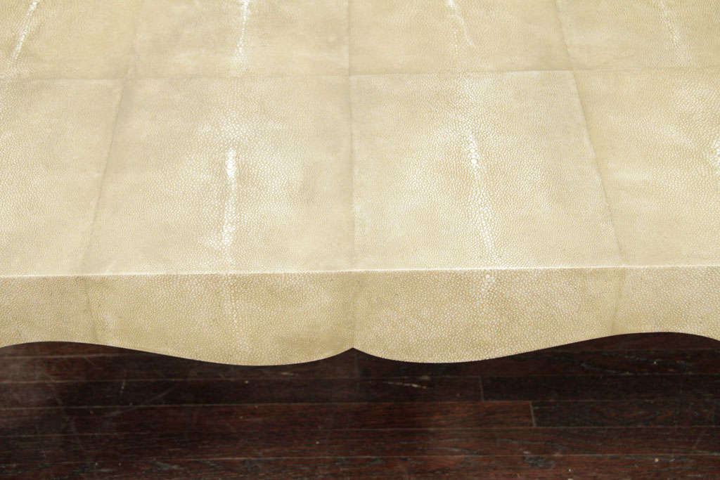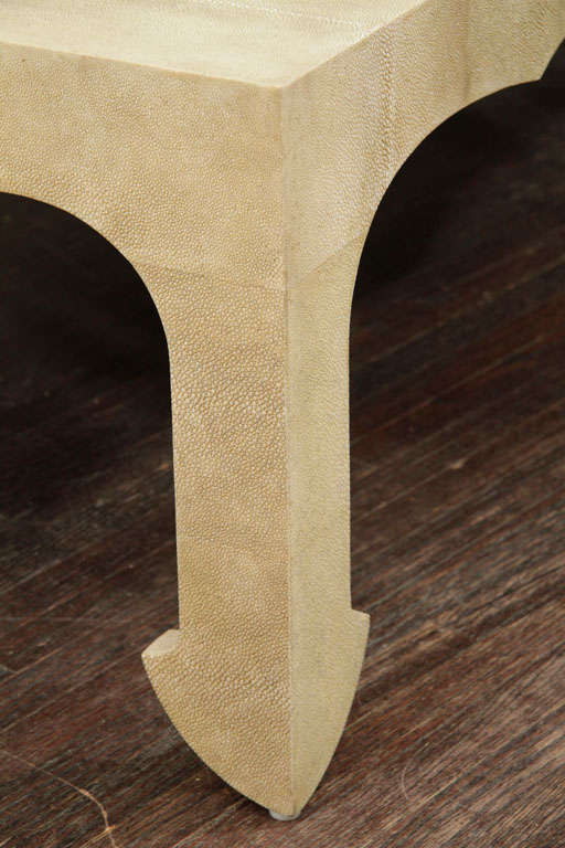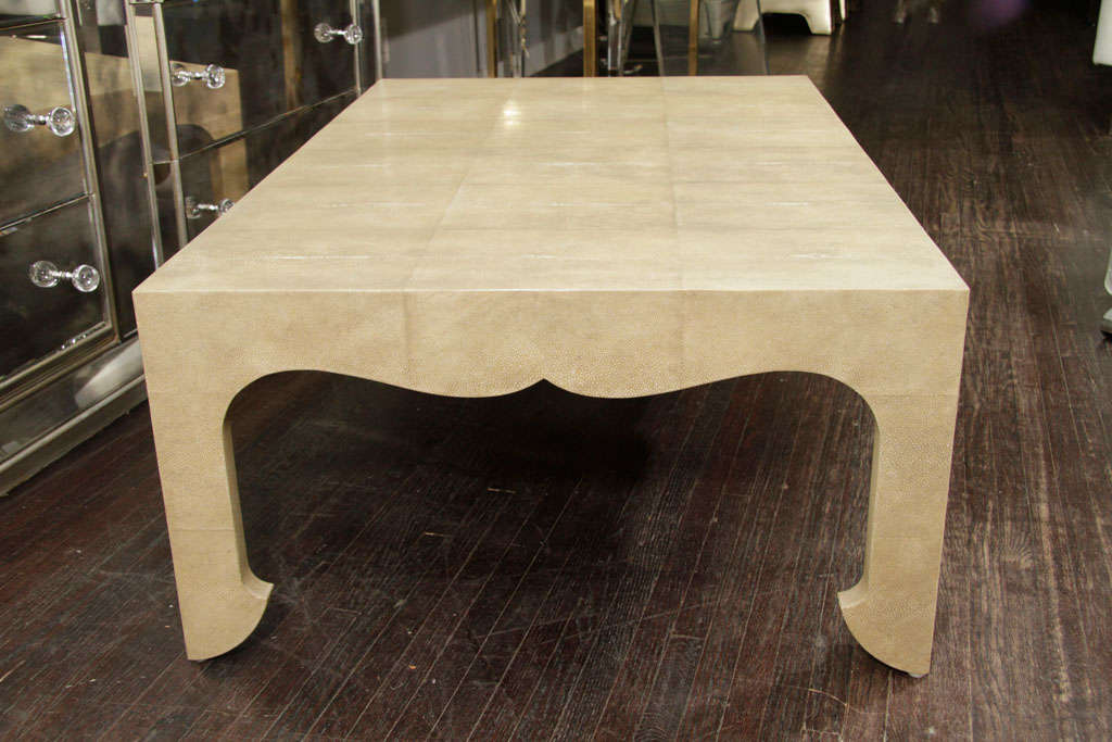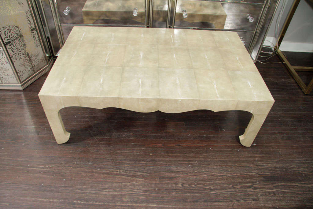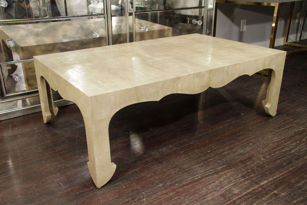 Chinoiserie Style Cocktail Table in neutral shagreen finish DETAILS PLACE OF ORIGIN: Asia DATE OF MANUFACTURE: 20th Century PERIOD: 20th Century MATERIALS AND TECHNIQUES: Shagreen Wx30 in. 41 cmHx122 cmWx76 cmD DEALER LOCATION: New York, NY DEALER REFERENCE NUMBER: 6121.