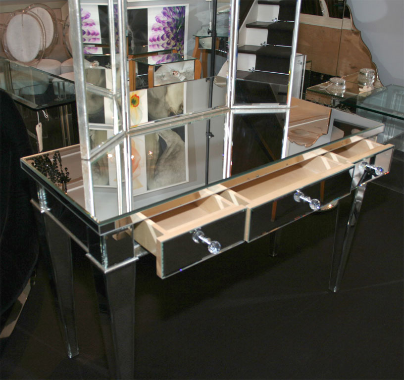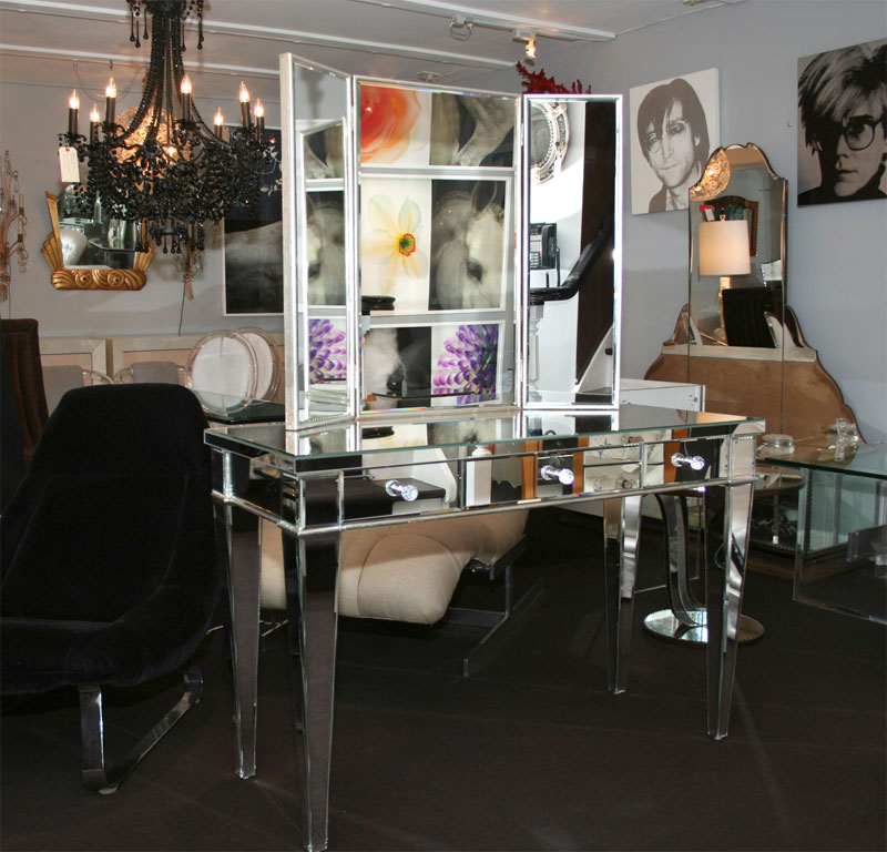 Classic Modern Mirrored Vanity Desk with Triptych Mirror