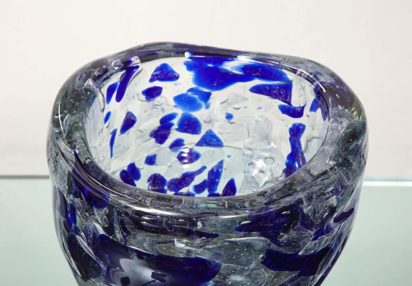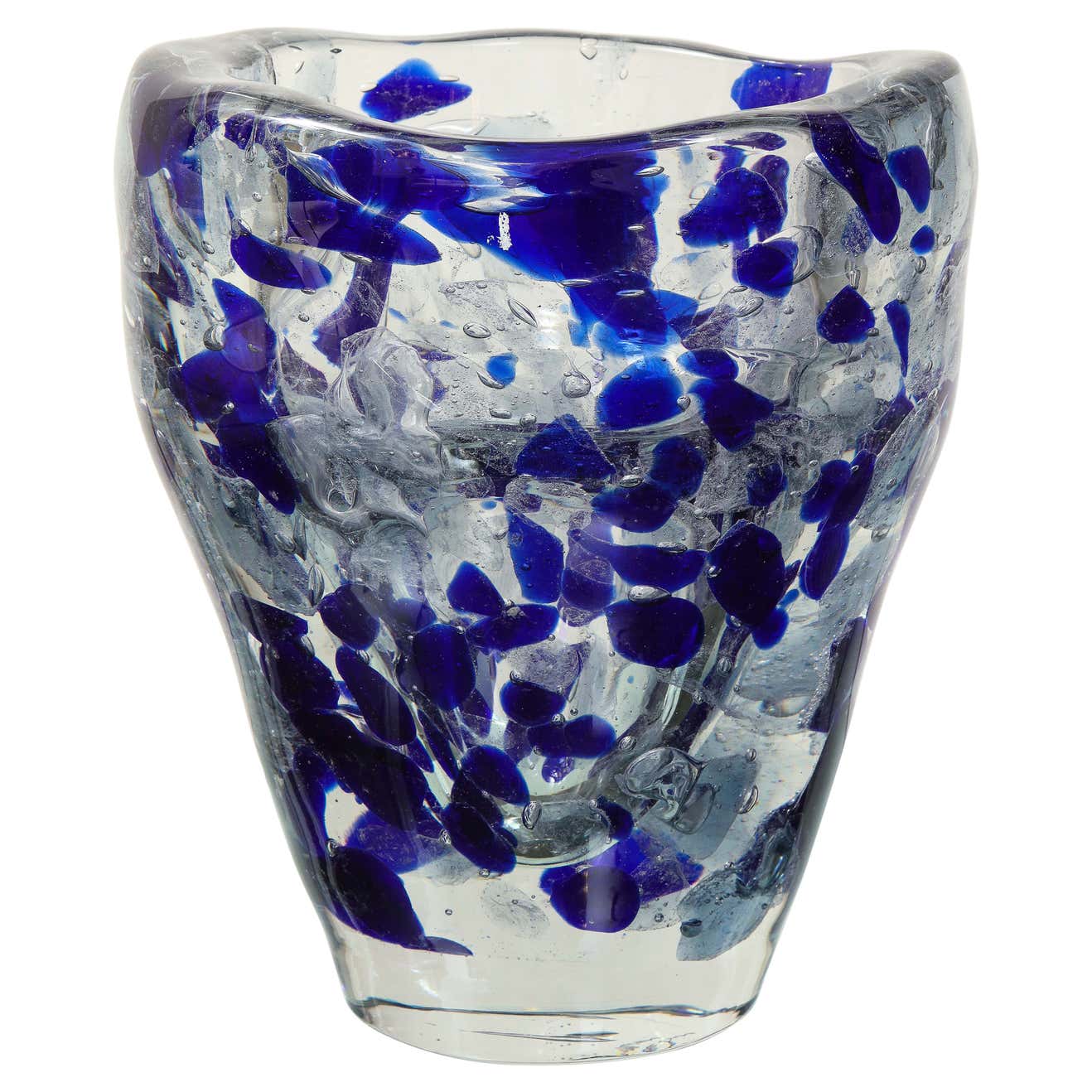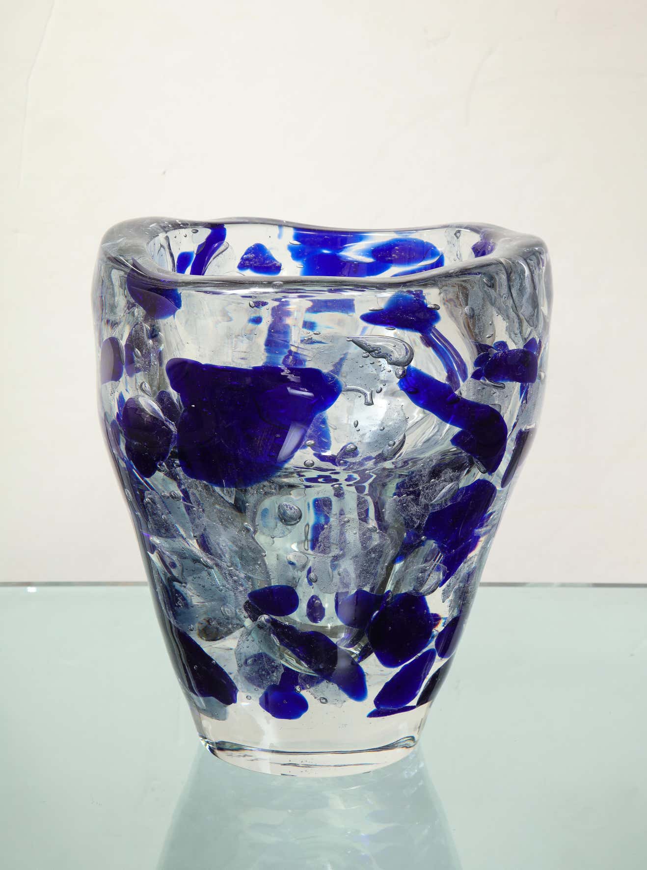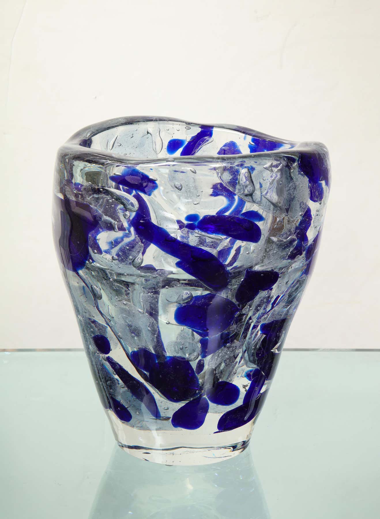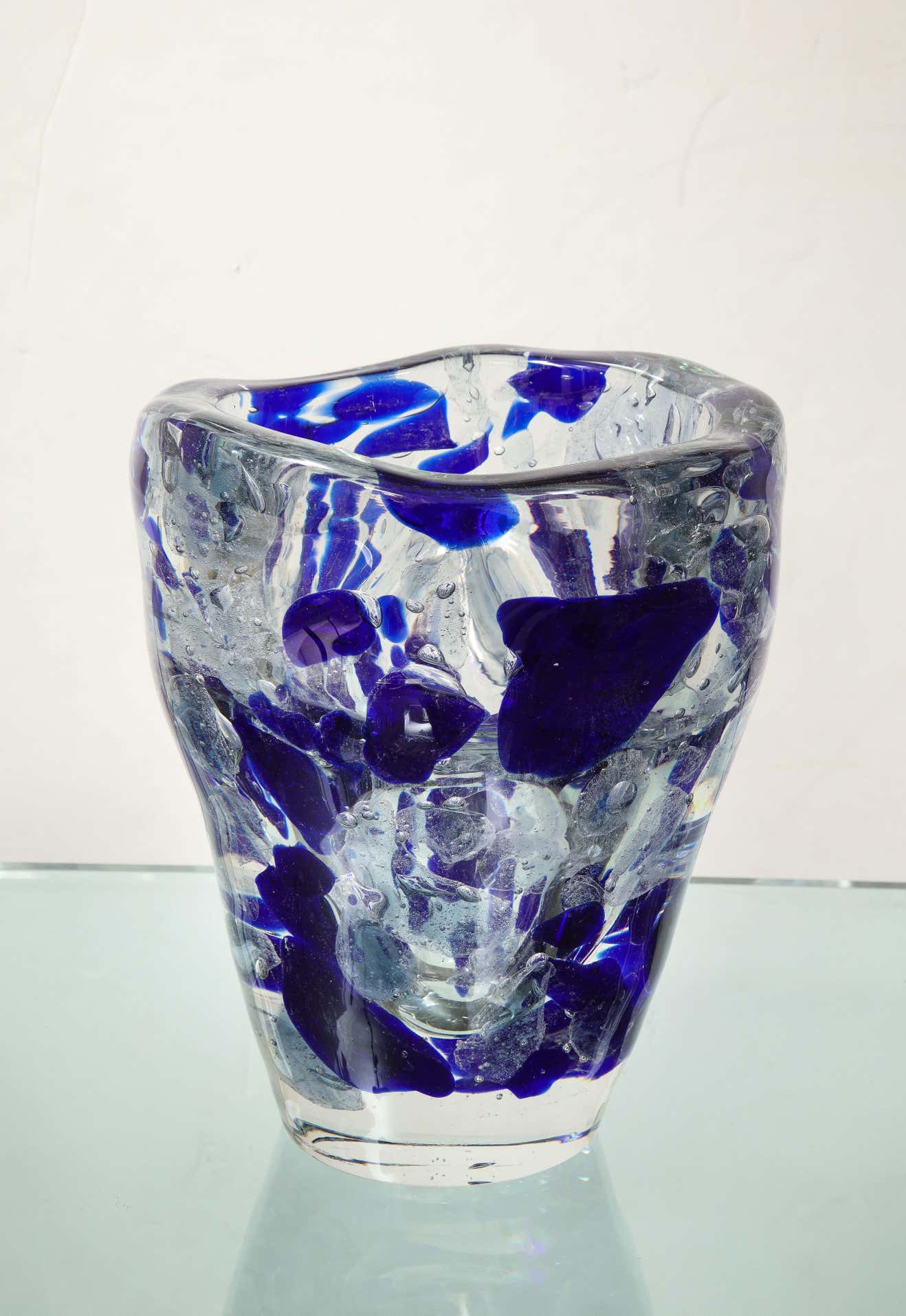 Clear and Royal Blue Murano Glass Pollock Vase