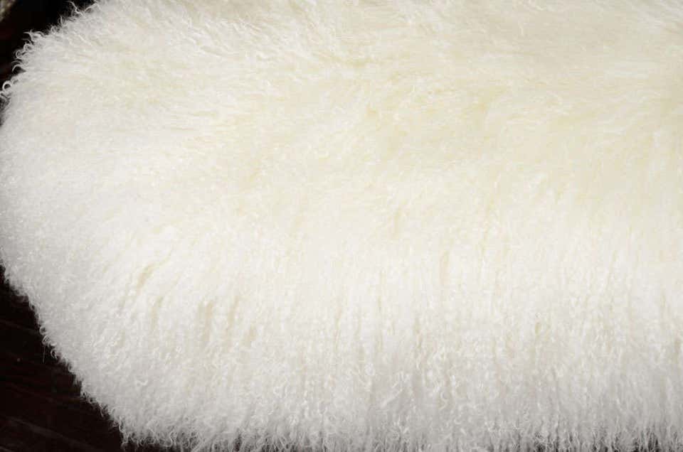 Custom curved Mongolian fur Bench with stainless steel legs. Customization available in different sizes and finish.
