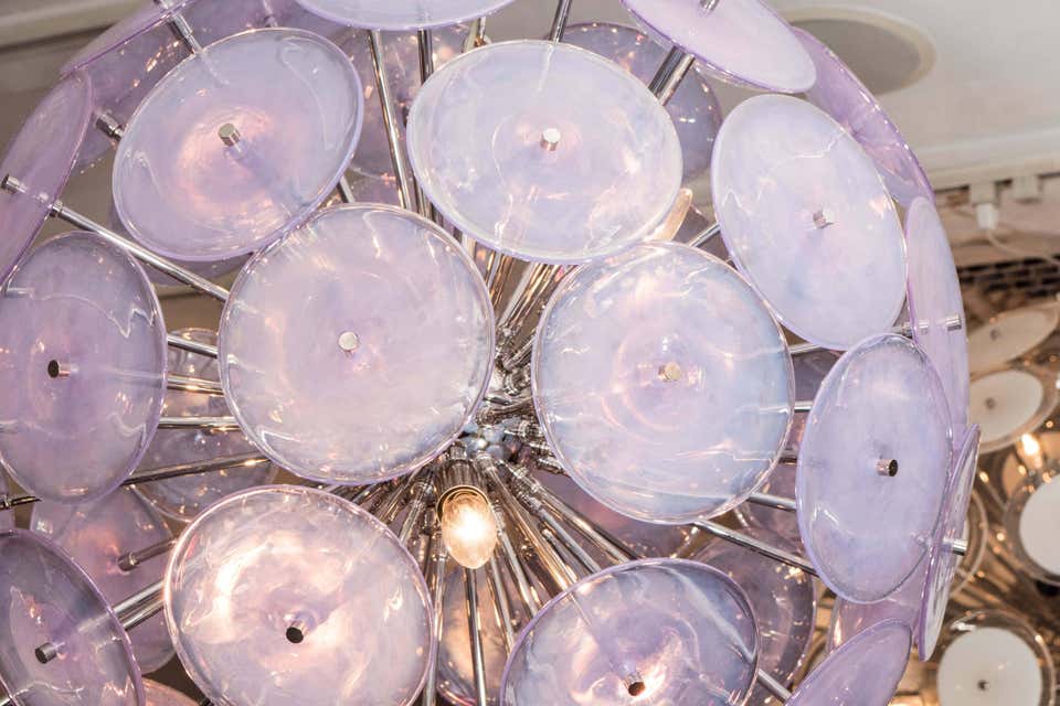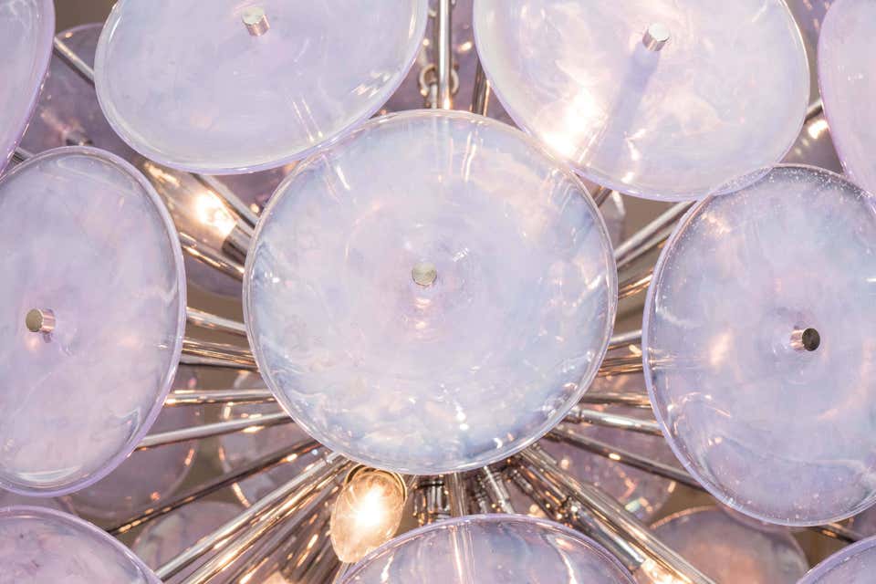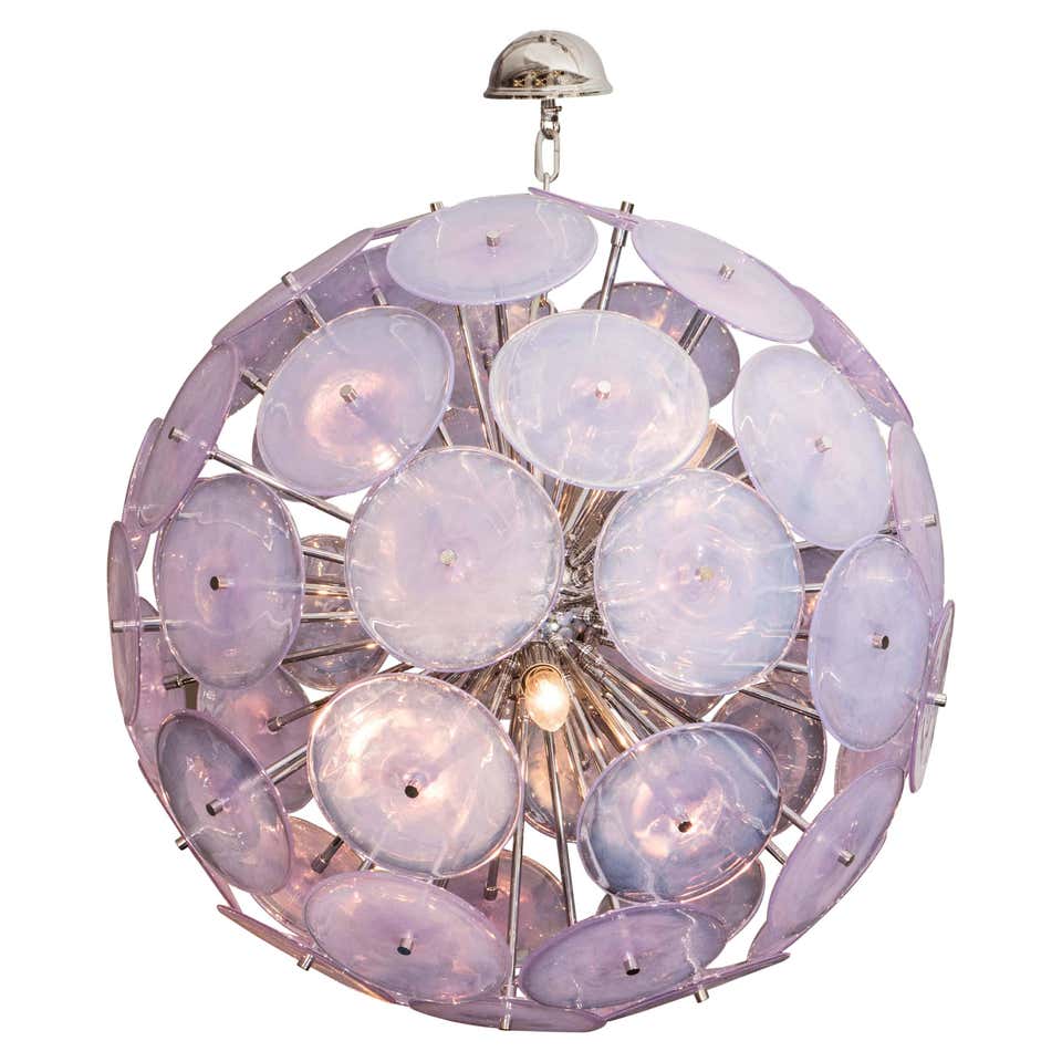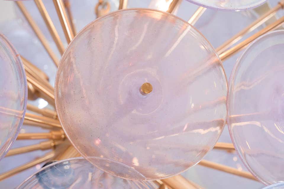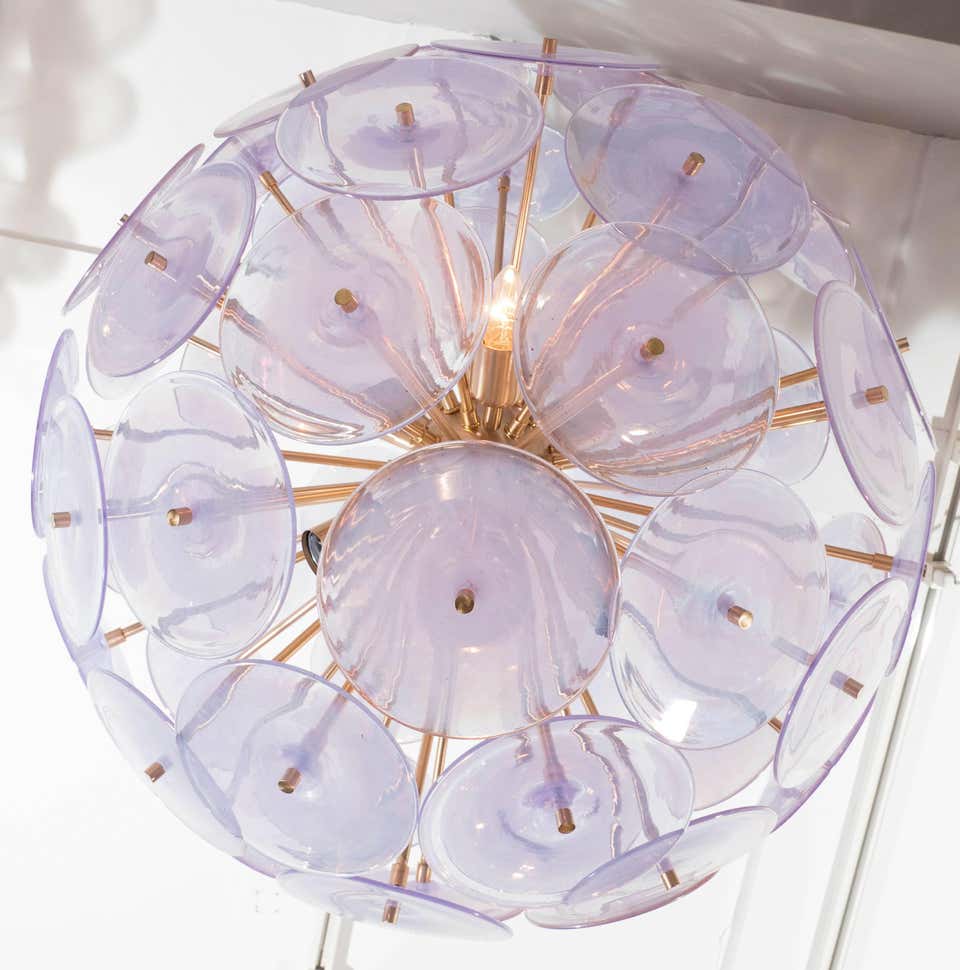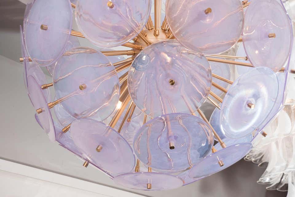 Custom Alex Iridescent Murano glass disc Sputnik chandelier in 24" Customization is available in different sizes, finishes and glass colors.
