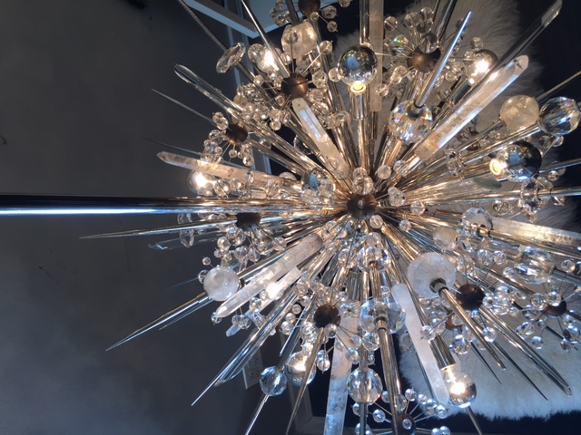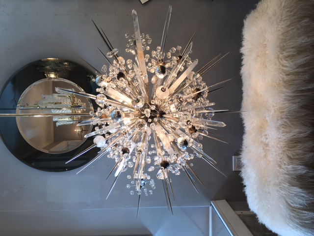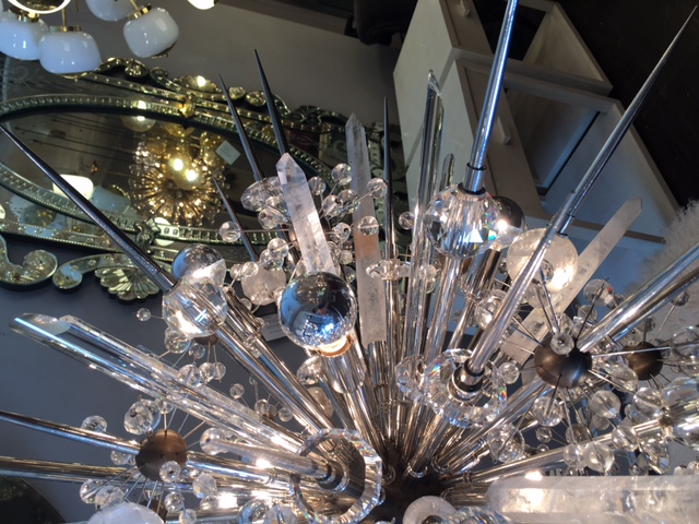 Custom Austrian Crystal Chandelier with Rock Crystal CREATOR: Venfield (Designer) PRODUCTION TYPE: Current Production PRODUCTION TIME: It will take 12-13 weeks to make this piece IN THE STYLE OF: Modern PLACE OF ORIGIN: United States DATE OF MANUFACTURE: 2016 PERIOD: 21st Century MATERIALS AND TECHNIQUES: Crystal, Rock Crystal Nickel, Antique Brass.