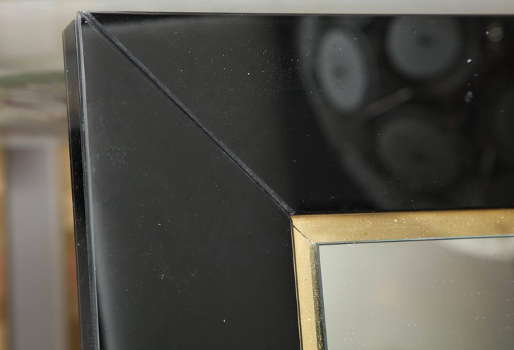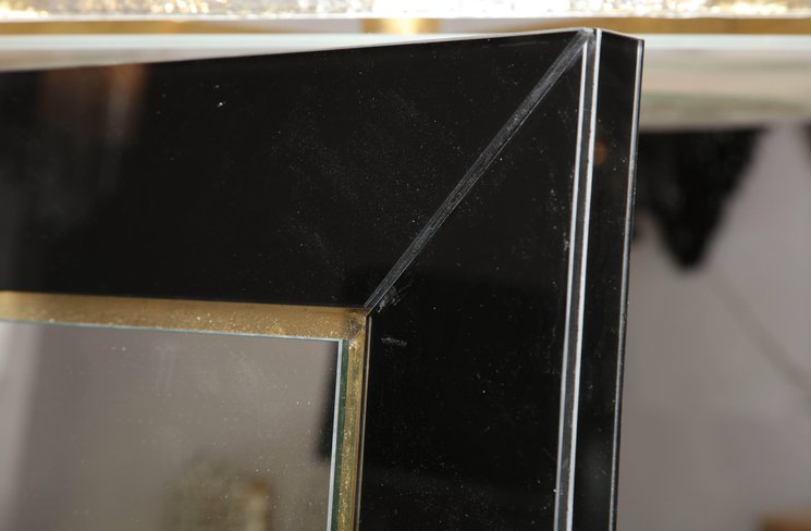 Custom Black Glass and Brass Full-Length Mirror Currently out of stock but available for custom order in different sizes. Inquire with Venfield about customization and estimated production lead times.