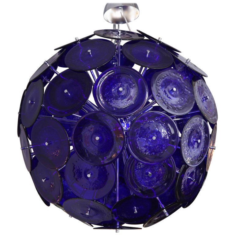 Custom blue bubble Murano glass disc Sputnik chandelier. Customization is available in different sizes, finishes and glass colors. PRODUCTION TYPE: New & Custom(Current Production) PRODUCTION TIME: It will take 10-11 weeks to make this piece IN THE STYLE OF: Mid-Century Modern PLACE OF ORIGIN: Italy DATE OF MANUFACTURE: 2018 PERIOD: 2010- MATERIALS AND TECHNIQUES: Murano Glass.