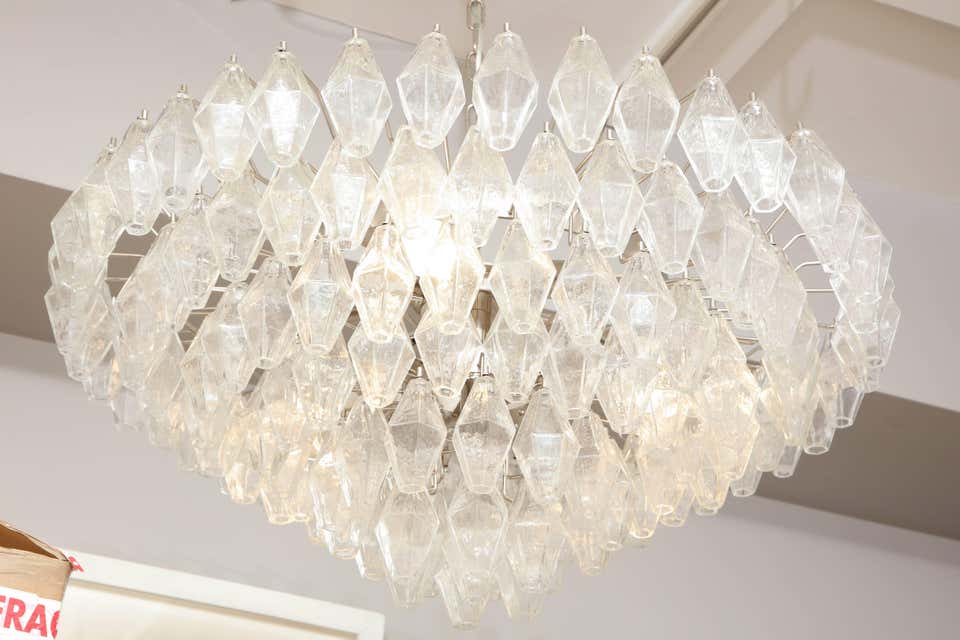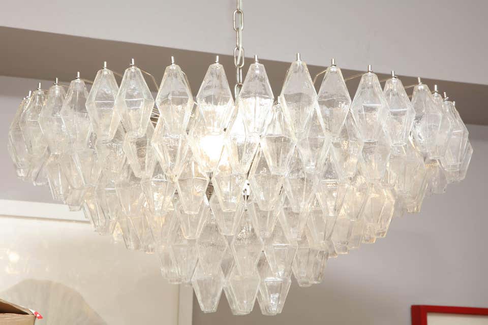 Custom clear polyhedron Murano glass chandelier. Currently out of stock but available for custom order in different sizes, shapes, finishes, and glass colors. Inquire with Venfield about customization and estimated production lead times.