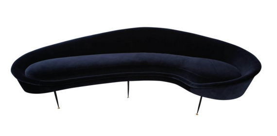 About Custom curved sofa with brass legs. As shown in Navy velvet. Customization Options custom colors, sizes and fabrics available Details CREATOR Venfield (Manufacturer) PRODUCTION TYPE Current Production PRODUCTION TIME It will take 11-12 weeks to make this piece IN THE STYLE OF Mid-Century Modern PLACE OF ORIGIN United States DATE OF MANUFACTURE 2017 PERIOD 21st Century MATERIALS AND TECHNIQUES Velvet Wx42 in.