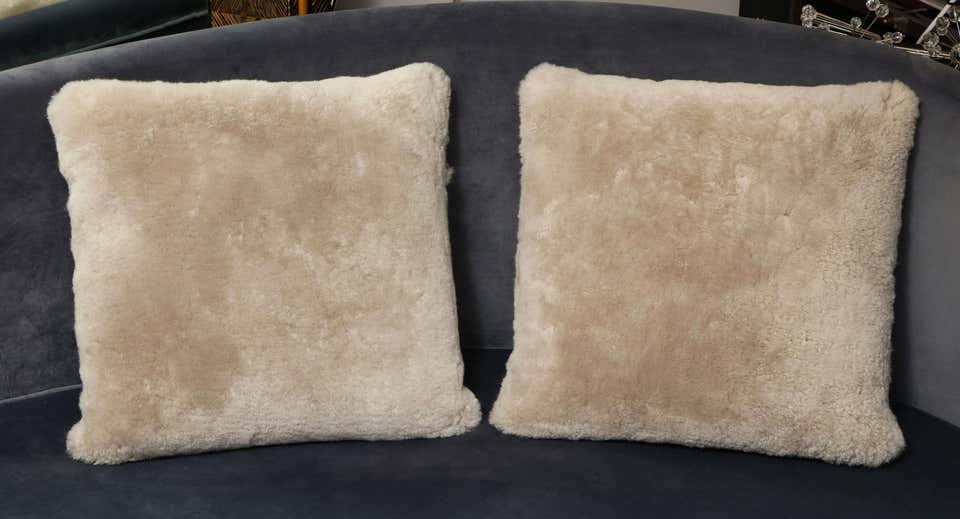 Custom genuine shearling pillow in taupe color. Currently out of stock but available for custom order in different sizes, colors, and fabrics. Inquire with Venfield about customization and estimated production lead times.