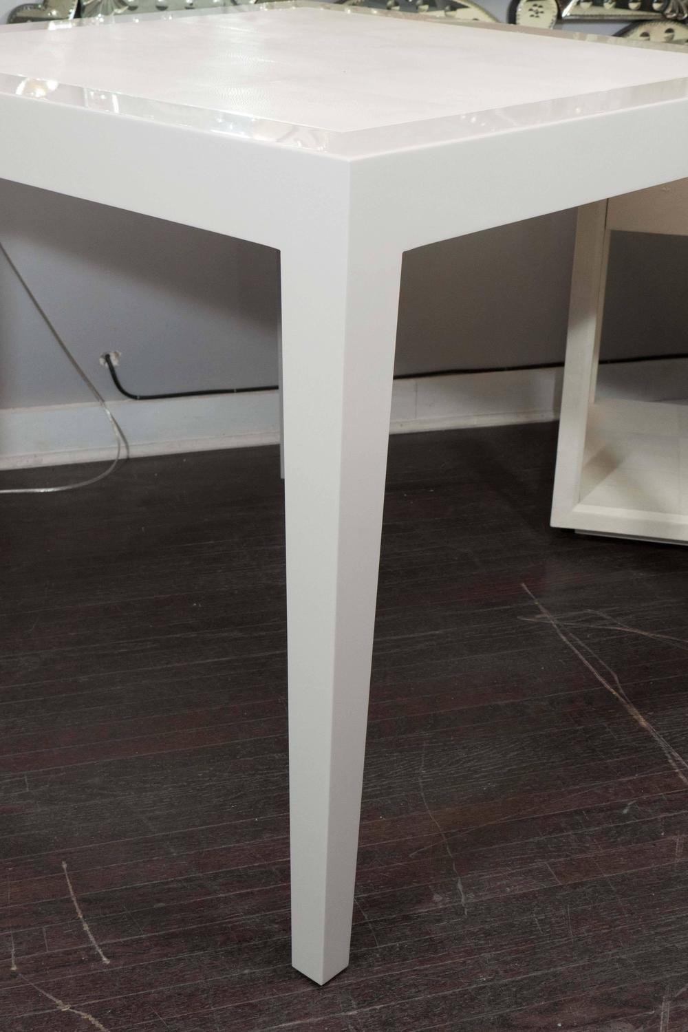 Made to order, custom Ivory Lacquer and water grey shagreen game table with bone inlay trim.