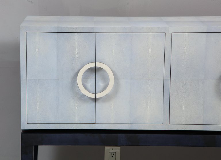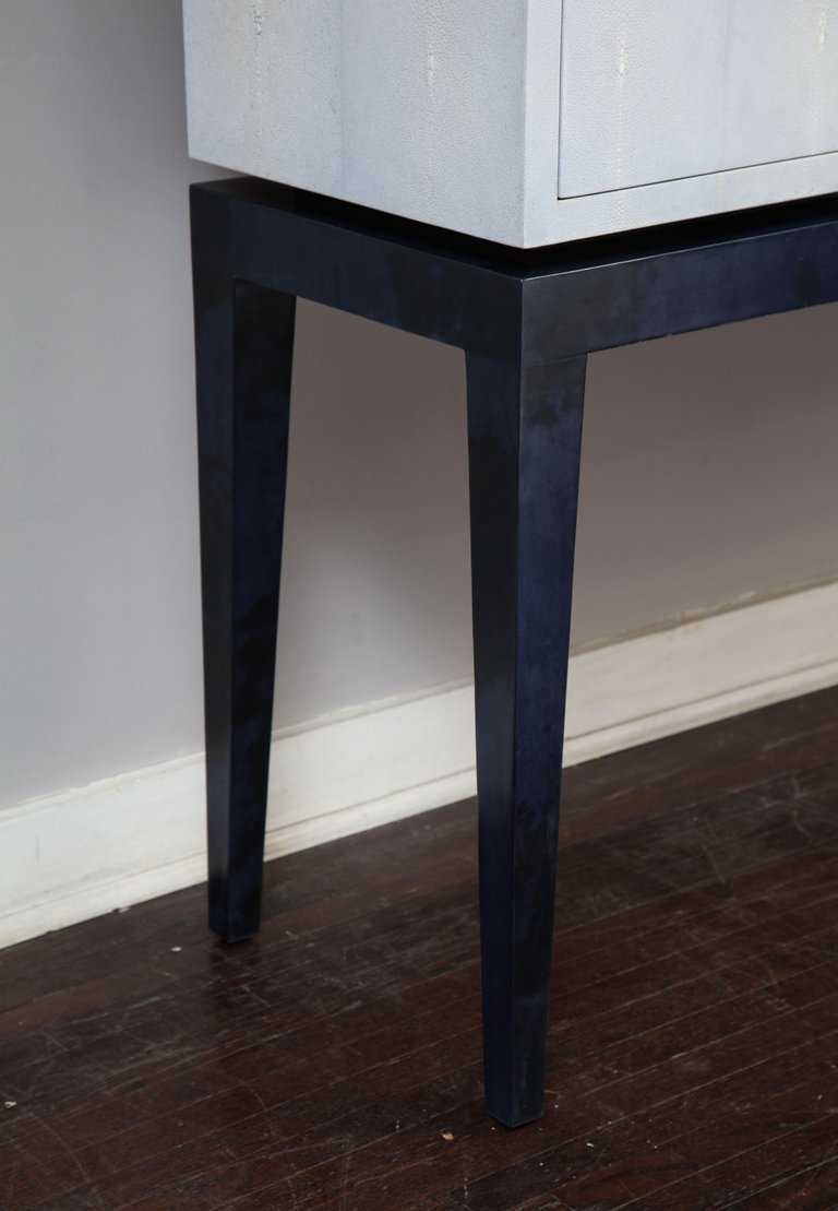 Custom Lagoon Blue Shagreen Bar Cabinet. Currently out of stock but available for custom order.
