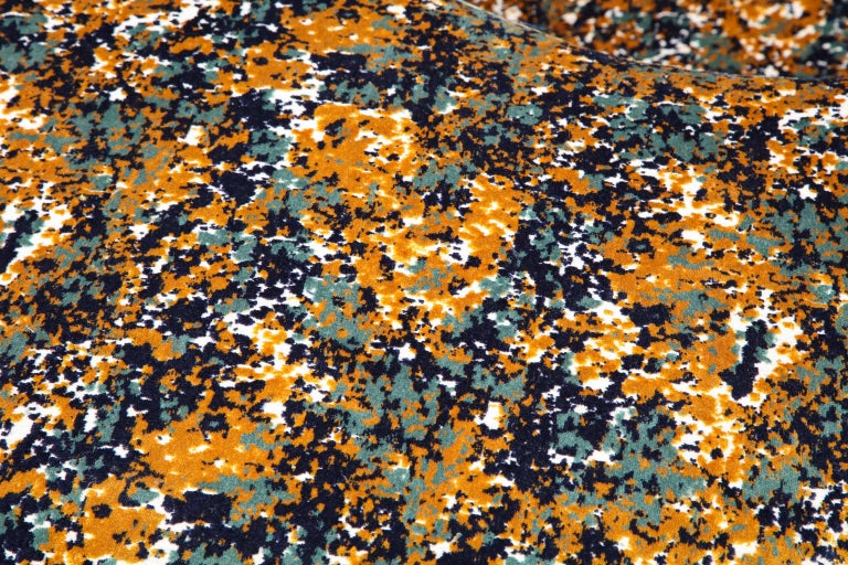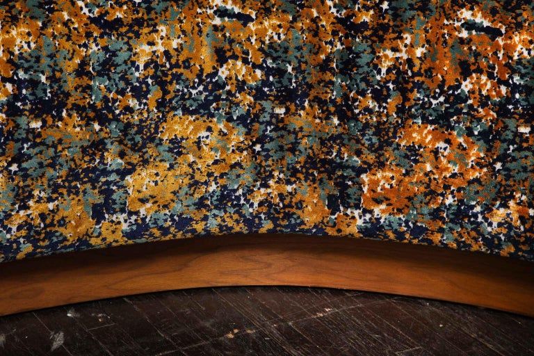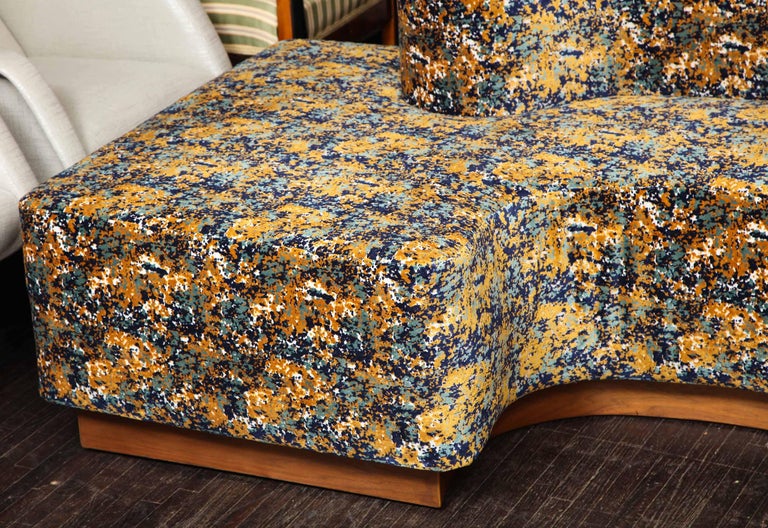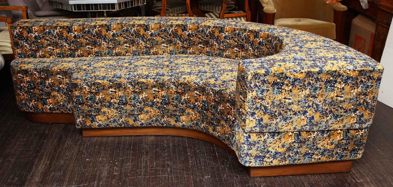 Lara style sectional sofa available for custom orders for different sizes, finishes and design. The sofa shown in photos is the vintage piece which was reupholstered with COM fabric, Cuivre Marine velvet fabric by Casamance, and wit tall wooden base in dark walnut finish added to the original sofa. 25 yards of fabric is requried for the size listed. The price does not include the cost of fabric.