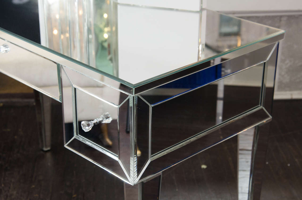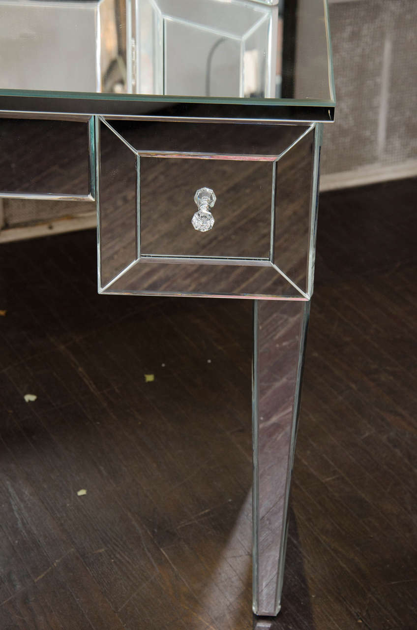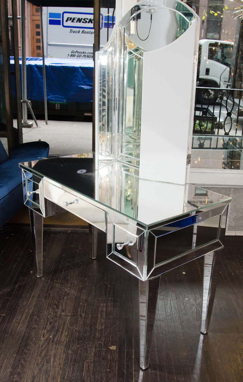 Custom mirrored vanity with tryptic mirror Currently out of stock but available for custom order in different sizes and hardware. Inquire with Venfield about customization options and estimated production lead times.