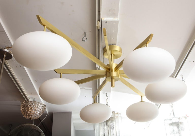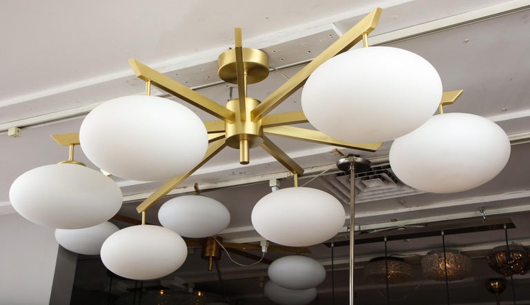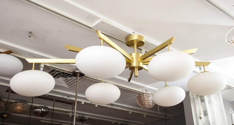 Custom Modern Italian Flush Mount with 9 Arms and 6 Opaline Globes