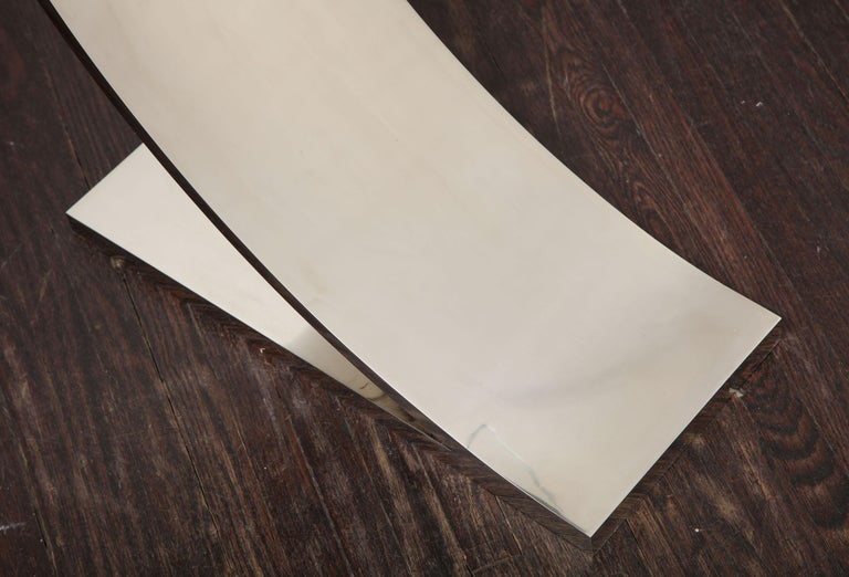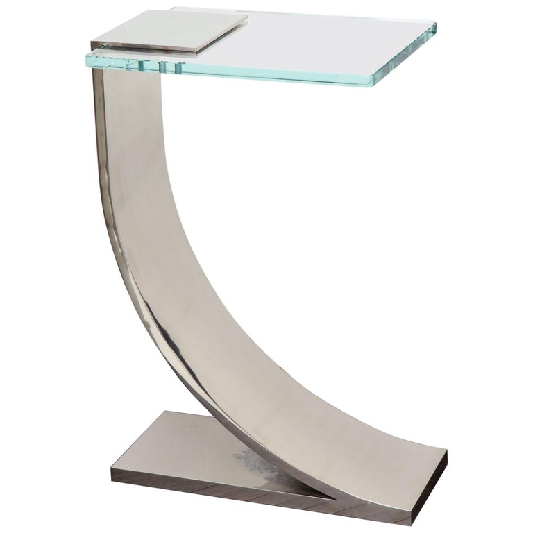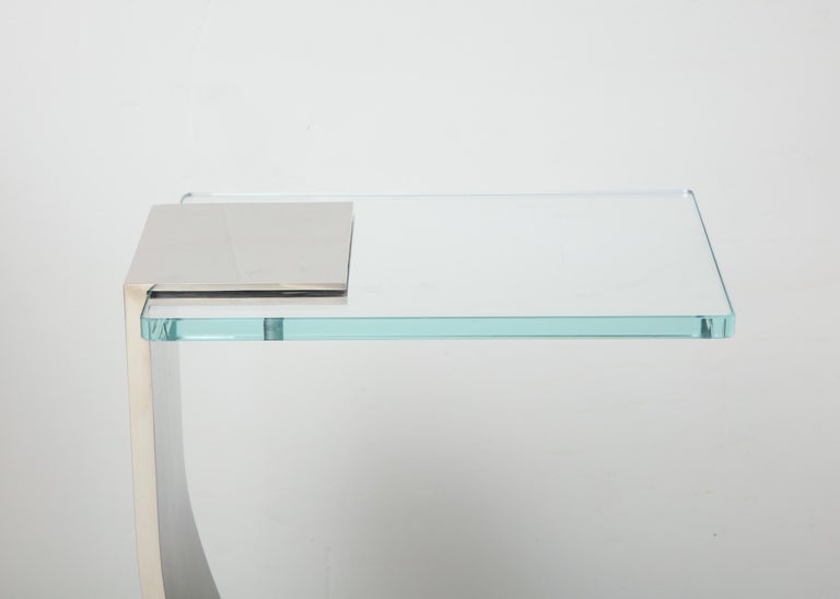Custom nickel plated Z table with thick glass top. This is a made-to-order table and currently available as shown in our NYC showroom.