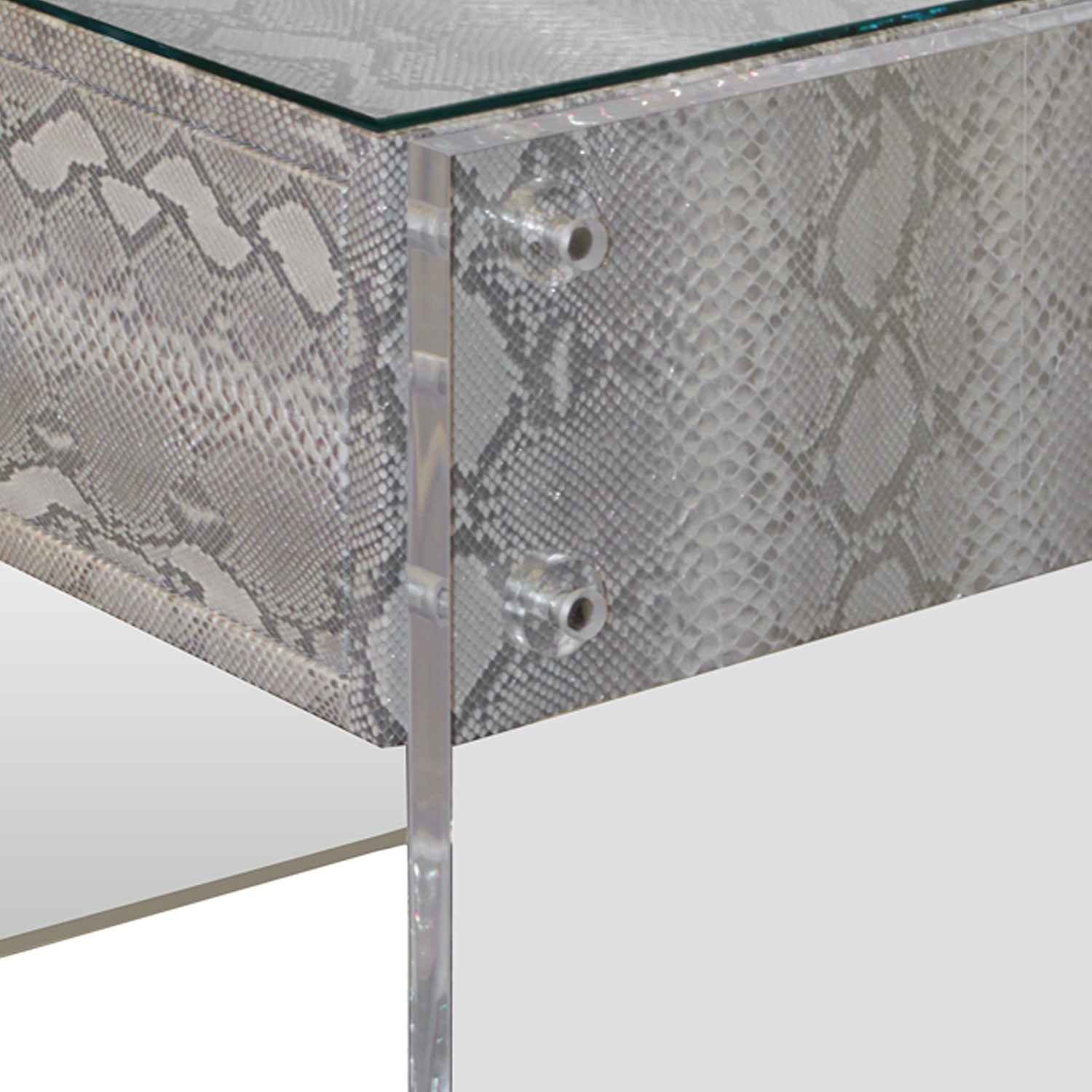 Custom Pair of Exotic Python and Lucite Nightstands