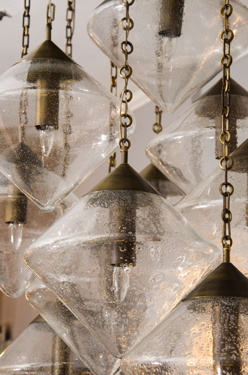 Custom Prism Globe Chandelier in Antique Brass Finish