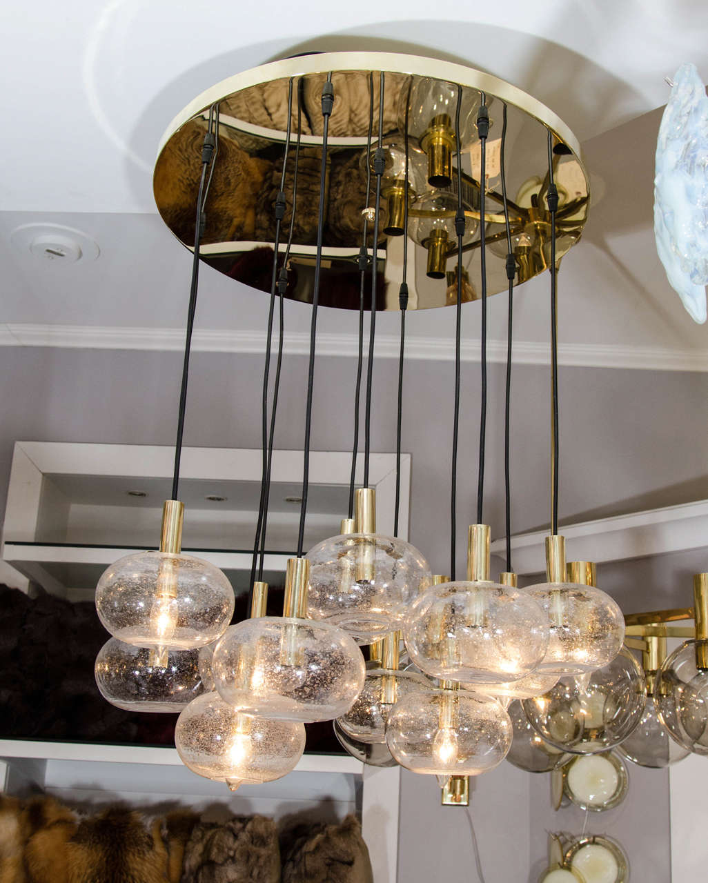 Custom Twelve-Oval Globe Chandelier with Brass Canopy