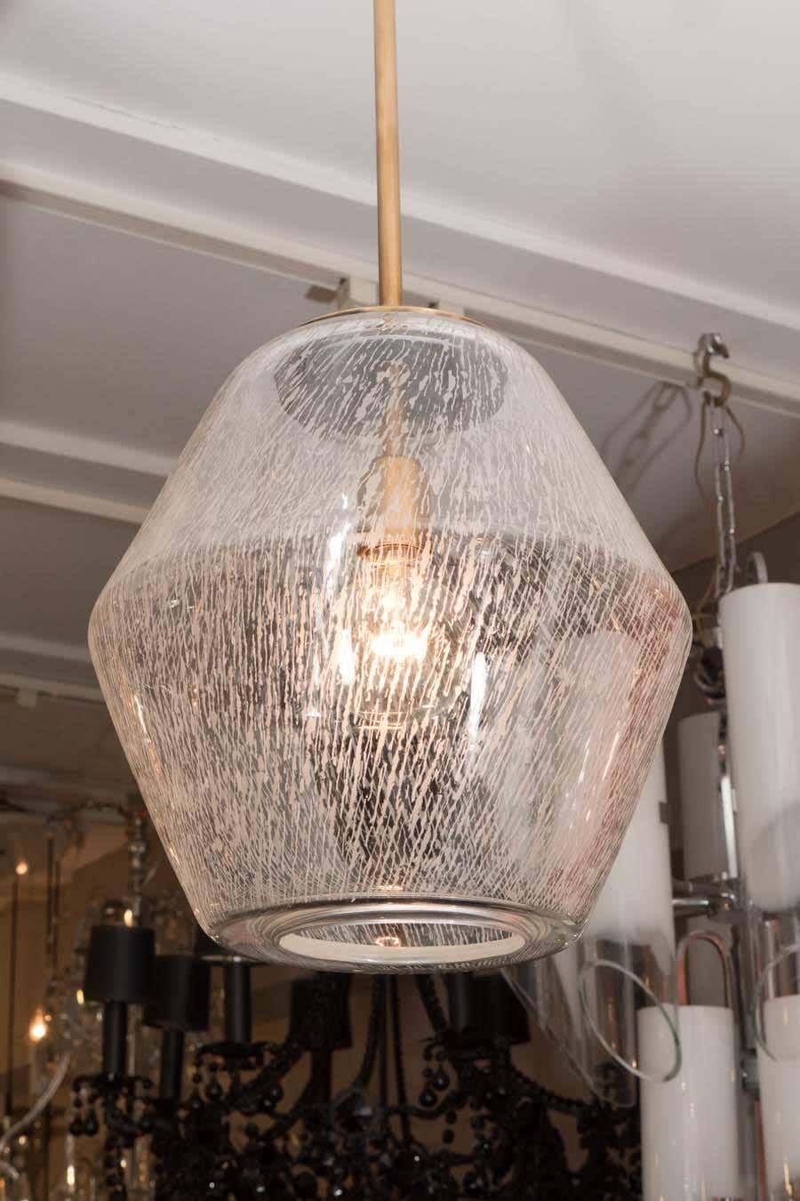 Etched Glass Globe Pendant with brass pole and canopy. Customization is available in different finish.