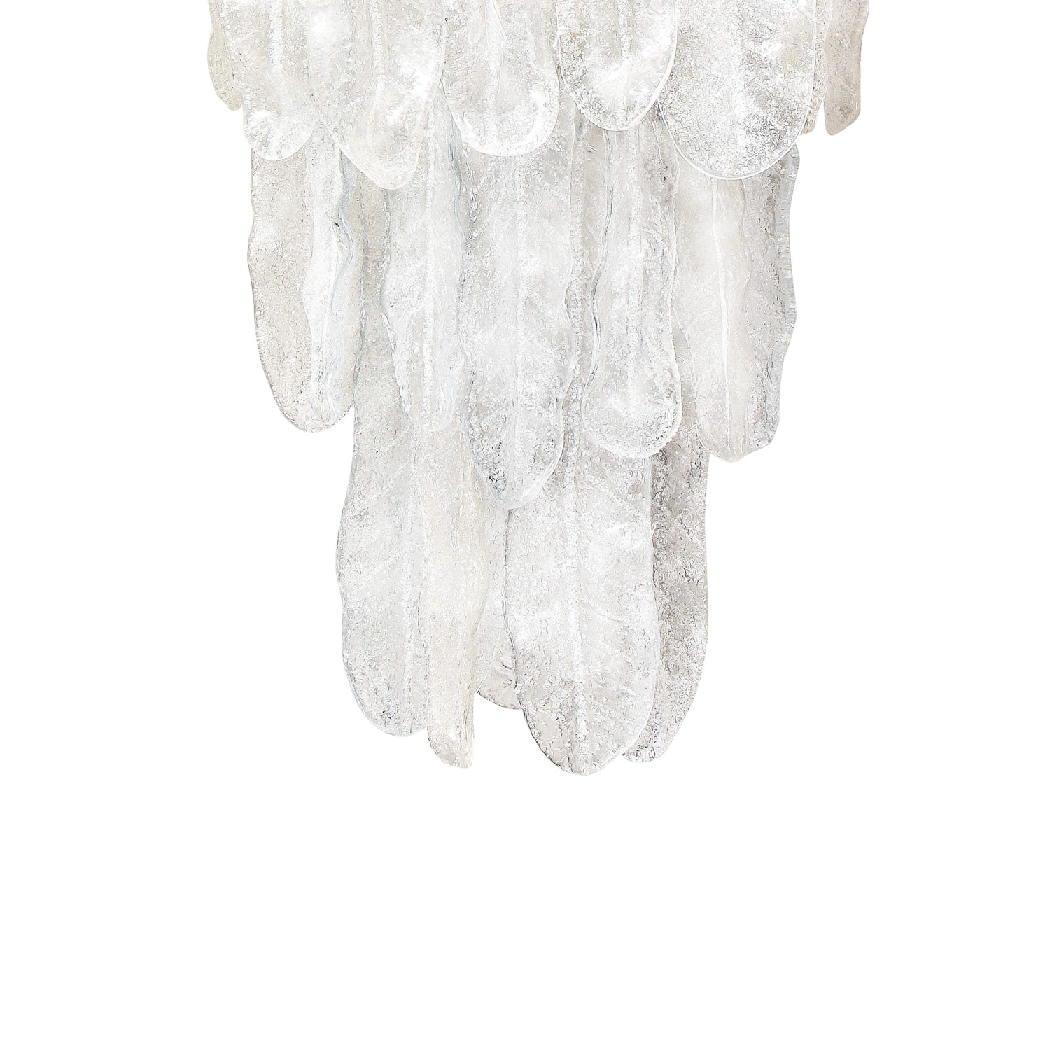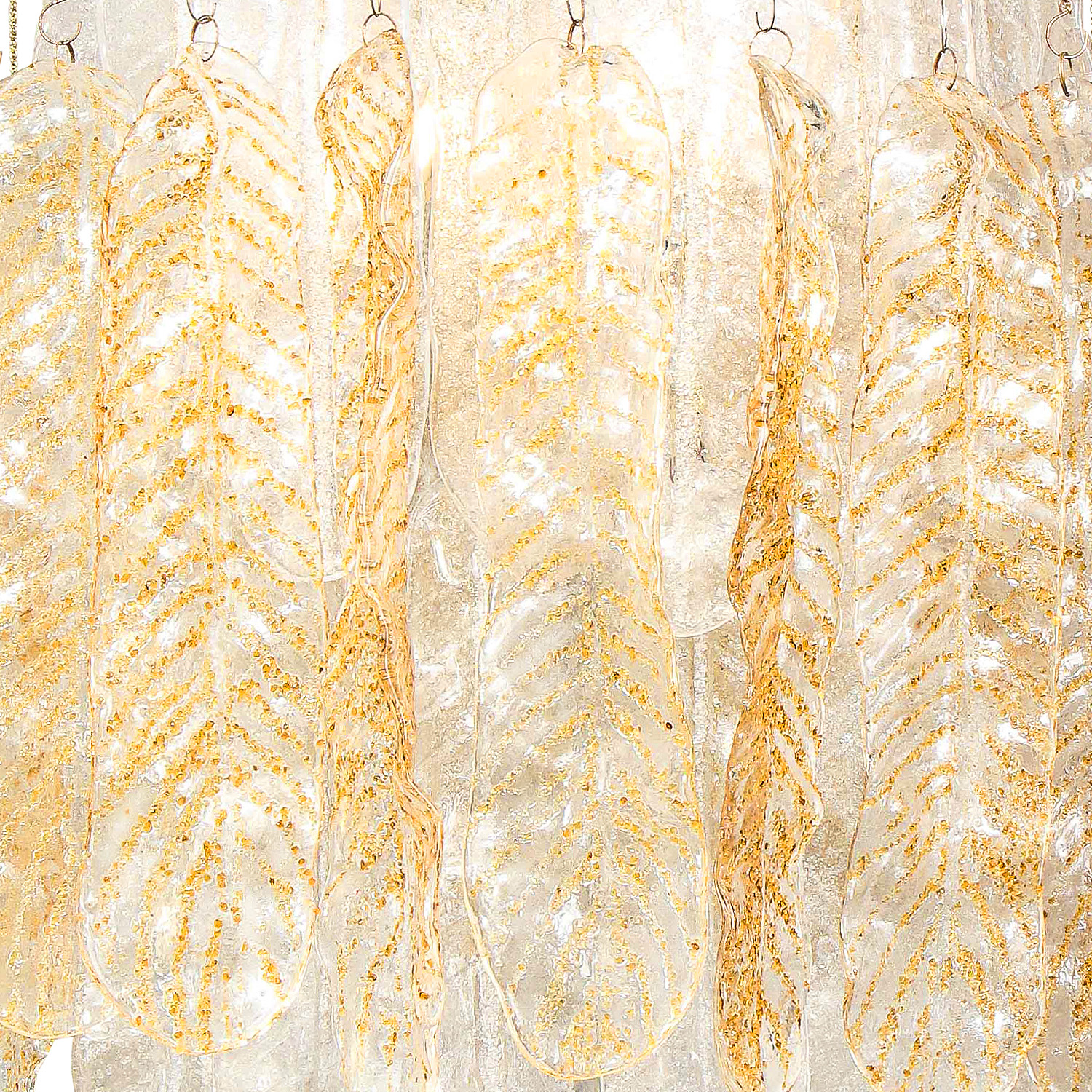 Large Mazzega Murano clear and gold glass feather chandelier with brass suspensions and canopy. Italy, 1960's Sold individually. There are currently two available.
