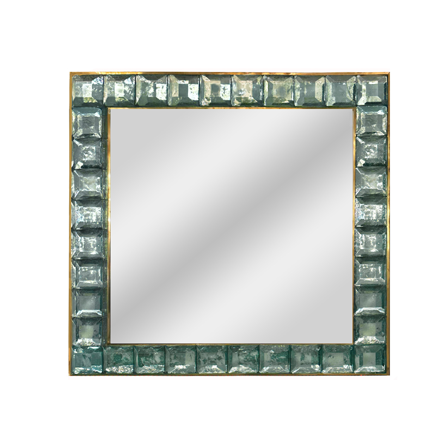 Hand crafted, sky blue glass block and polished brass framed mirror. Italy 2023. Custom Please inquire with Venfield. Lead time 6-8 weeks. Currently available in our New York City Showroom as shown.
