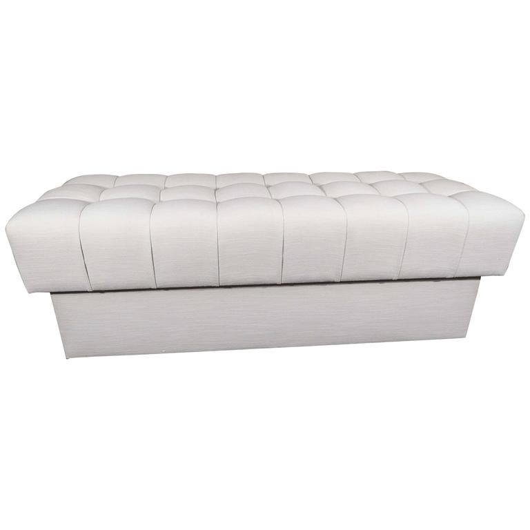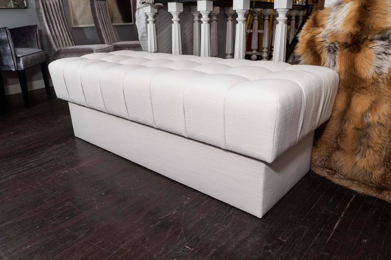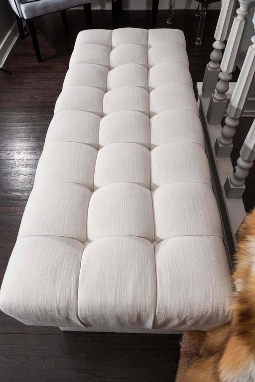 Fully upholstered tufted bench. COM (4 yards). DETAILS CREATOR: Venfield (Designer) PRODUCTION TYPE: Current Production PRODUCTION TIME: It will take 6-7 weeks to make this piece IN THE STYLE OF: Modern PLACE OF ORIGIN: United States DATE OF MANUFACTURE: 2016 PERIOD: 21st Century Wx22. 51 cmHx152 cmWx57 cmD MATERIALS AND TECHNIQUES: Upholstery.