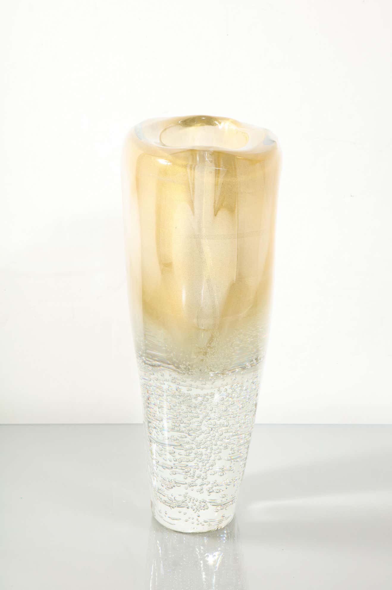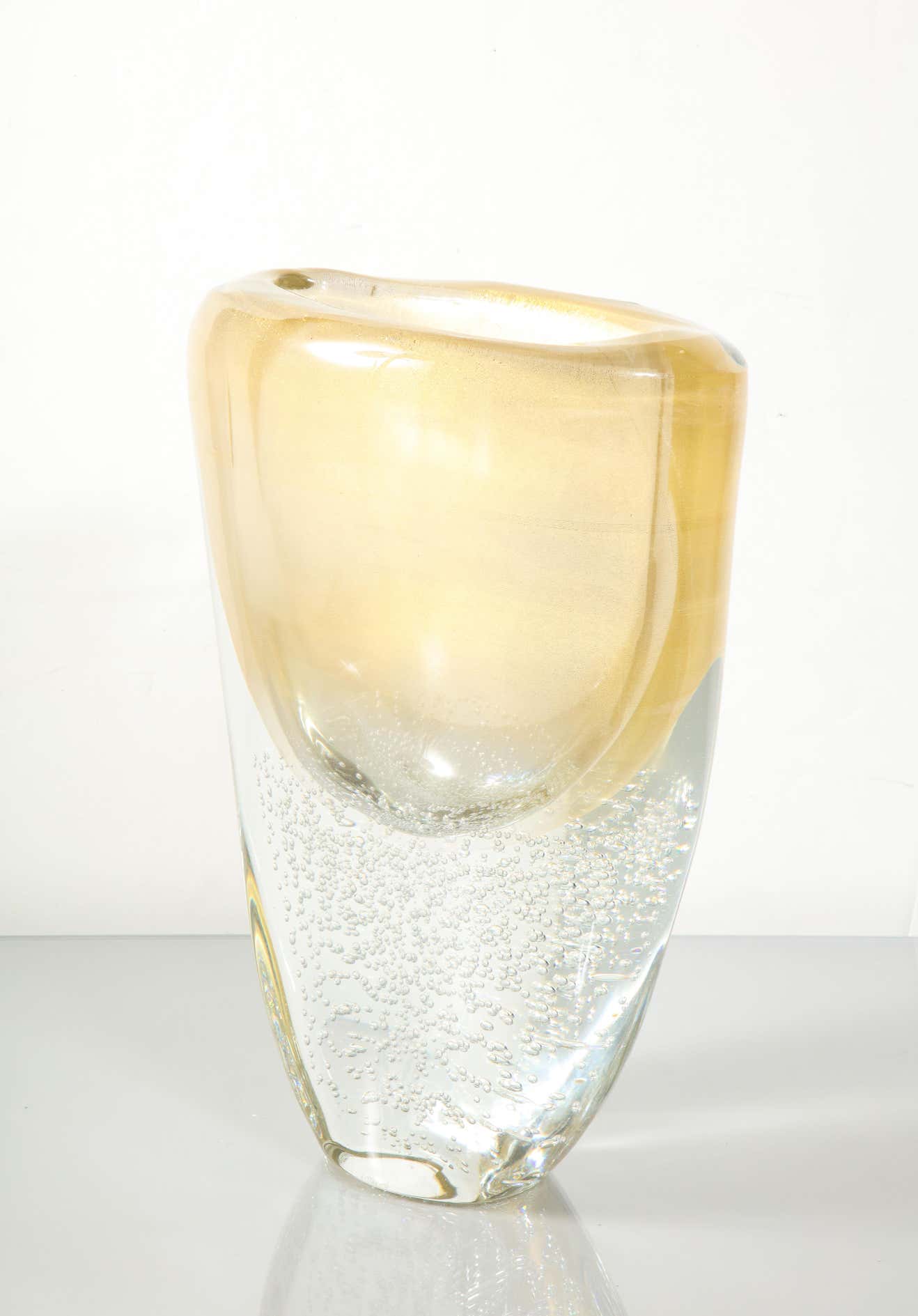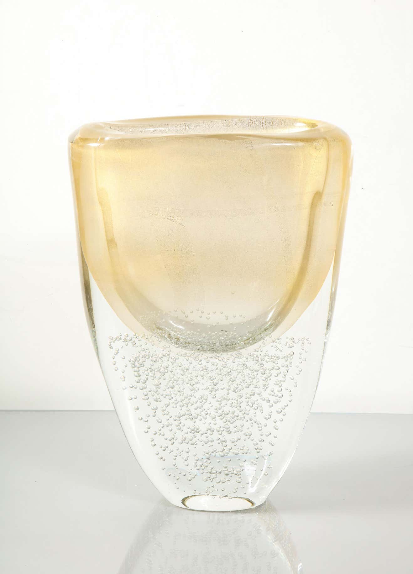 Sommerso Murano glass vase with clear pulegoso and 24 karat gold inclusions. Murano Italy, 2023 Availabilty of item may vary. Please inquire with Venfield.