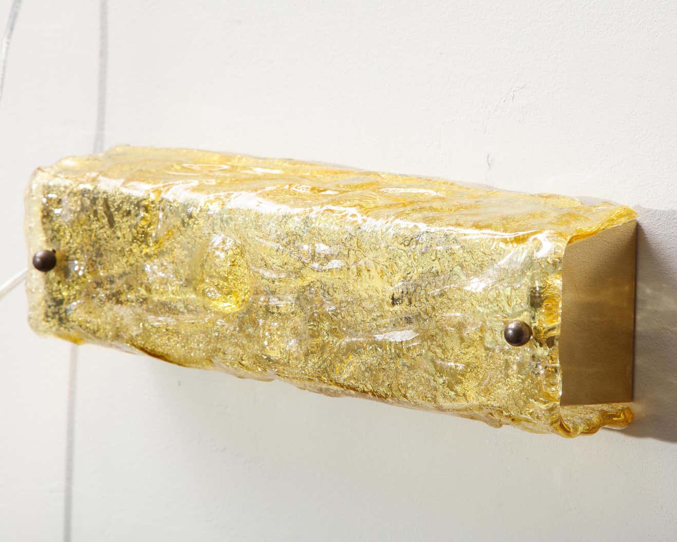 Vintage gold glass wall light. The fixture has been re-plated to brass and rewired for U. S. standard.