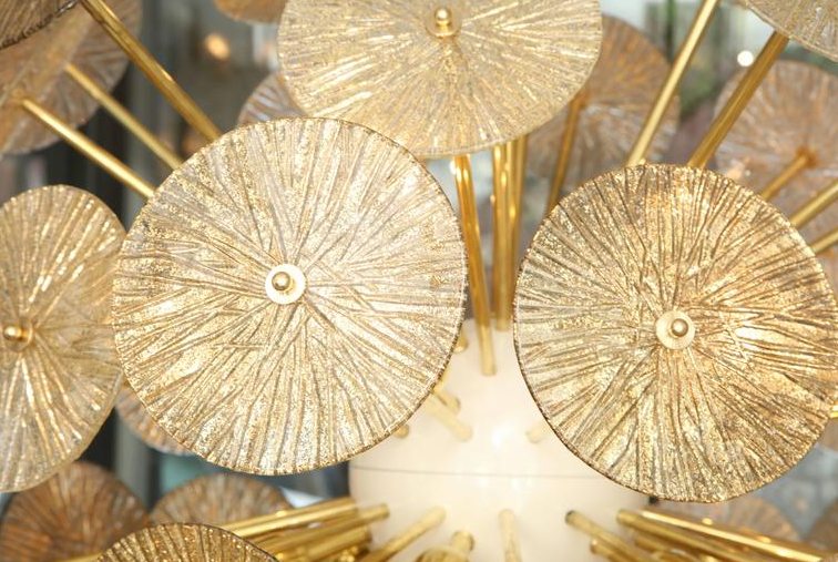 Custom Gold Murano glass parasol Sputnik chandelier. Customization is available in different sizes and finishes. PRODUCTION TYPE: Current Production PRODUCTION TIME: It will take 9-10 weeks to make this piece IN THE STYLE OF: Modern PLACE OF ORIGIN: Italy DATE OF MANUFACTURE: 2016 PERIOD: 21st Century MATERIALS AND TECHNIQUES: Brass, Murano Glass.