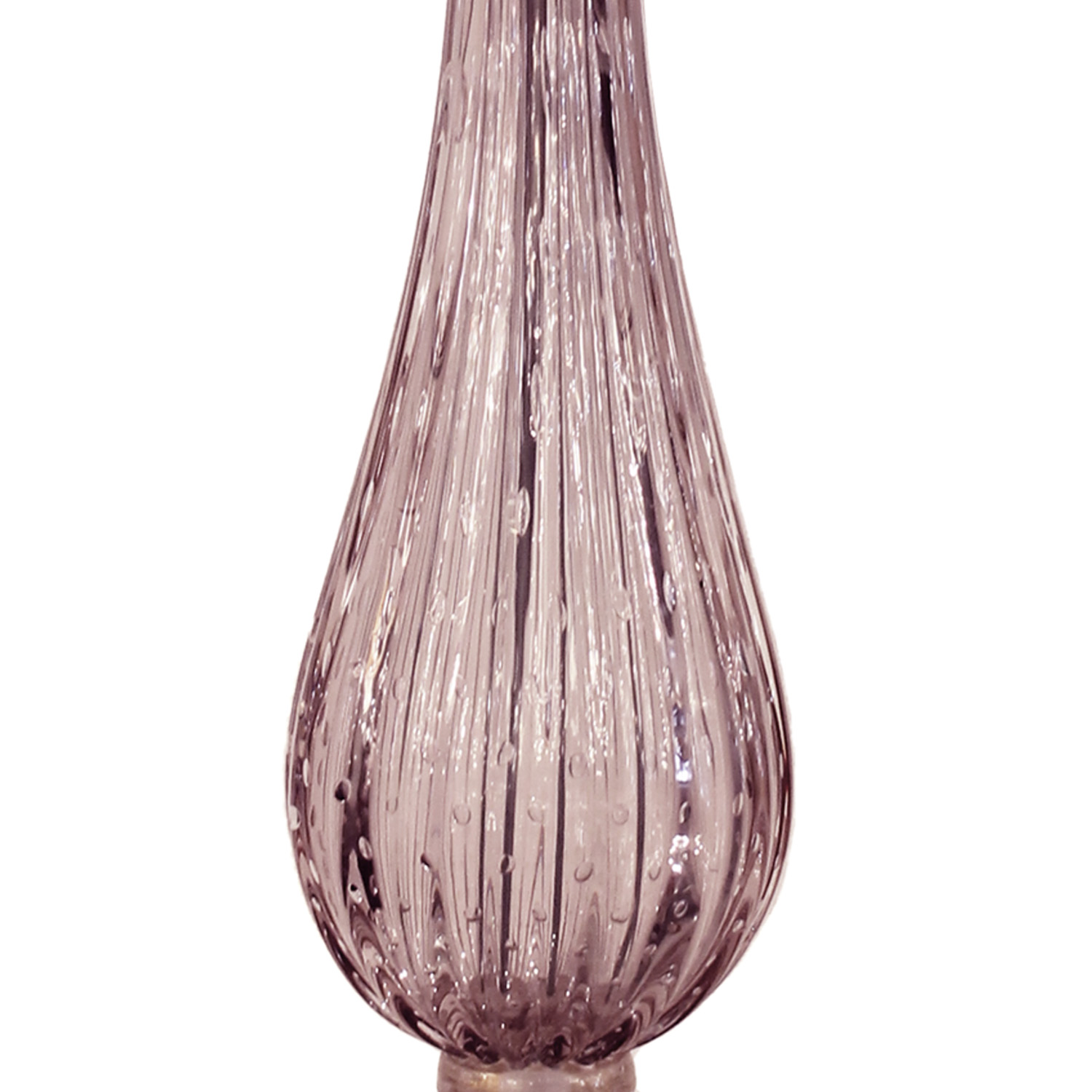 Elegant pair of hand-blown Murano Glass table lamps in clear and amethyst Bullicante glass with brass hardware in the manner of Barovier & Tosso. Lamp shades sold separately.