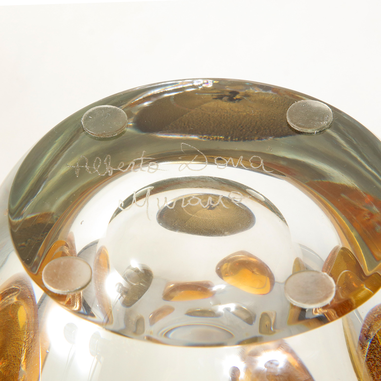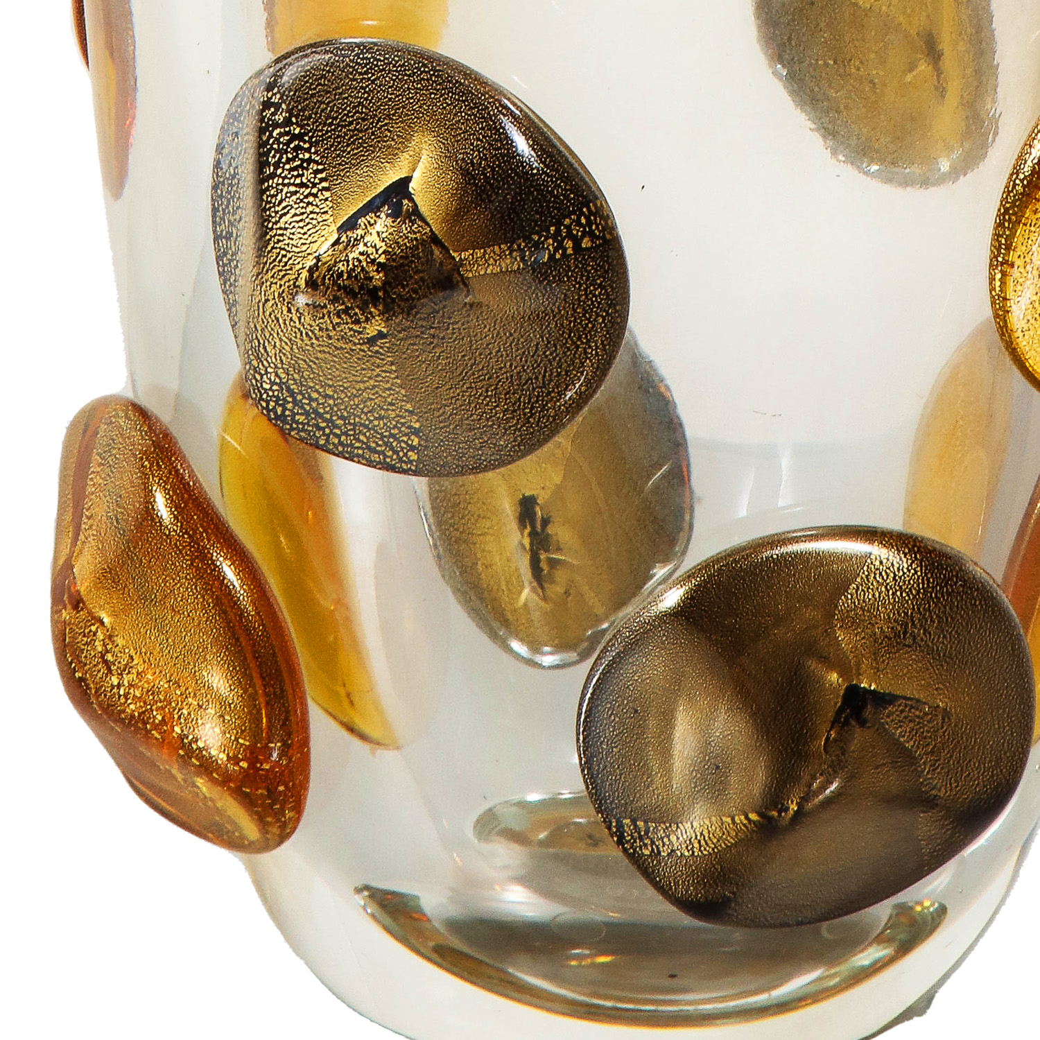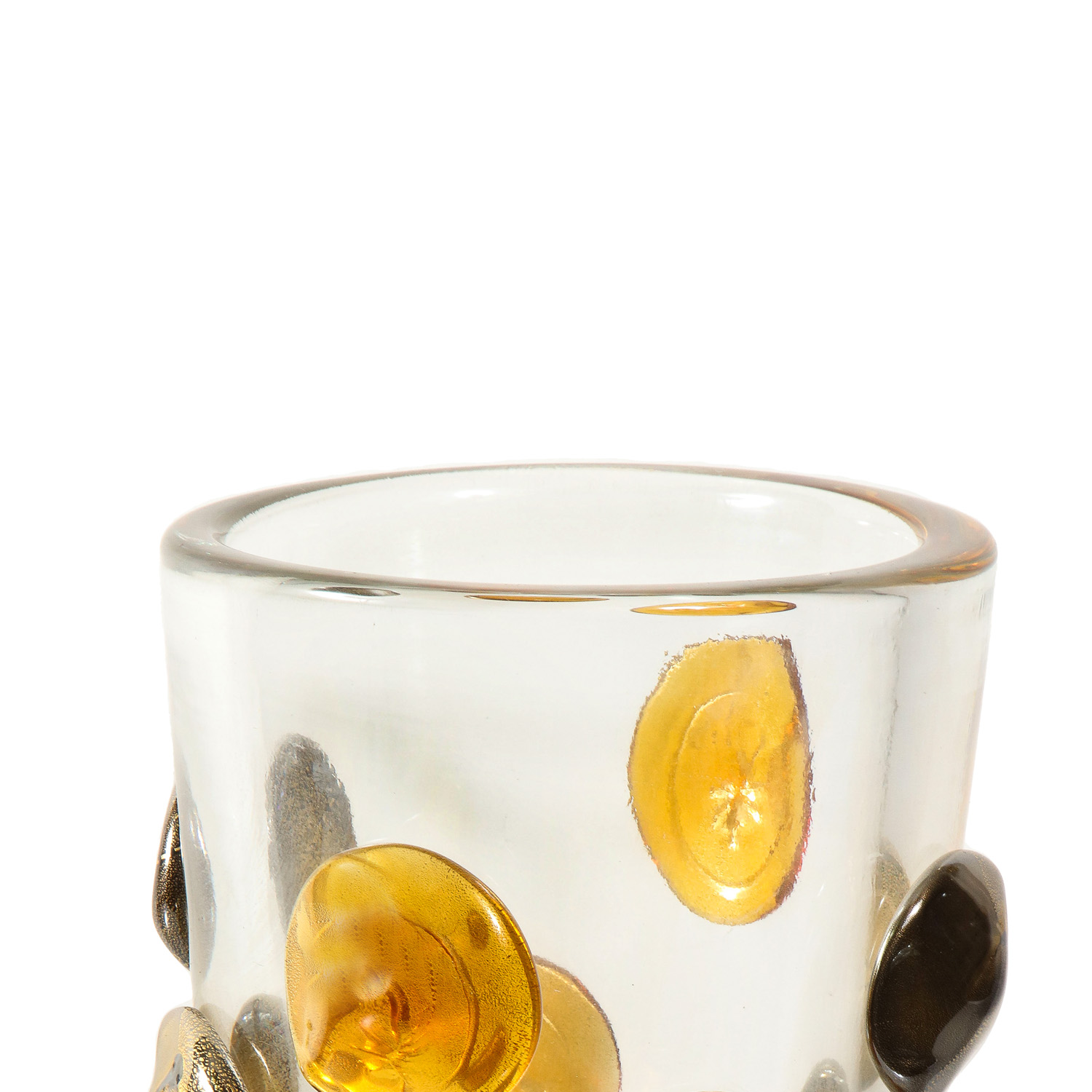 Exquisite clear hand-blown Murano glass vase with raised amber and gold glass dot design. Italy. Currently out of stock but available for custom order. Please inquire about available colors and estimated production lead times.