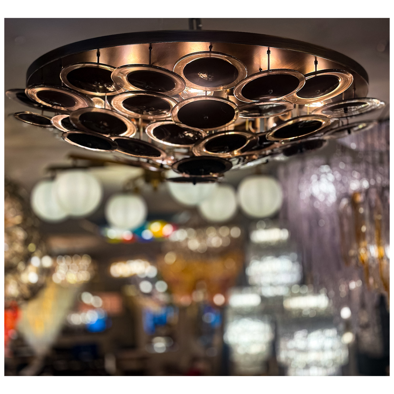 Elevate your space with the Hand-Crafted Black & Clear Murano Glass Disc and Bronze Flush Mount, a masterpiece meticulously crafted by the best glass blowers in Venice. Showcasing an exquisite blend of black and clear glass, each Murano glass disc offers unrivaled luxury and beauty. The sophisticated bronze finish on the body enhances its timeless appeal, making it a perfect addition to any interior. Discover the epitome of elegance and artisanal craftsmanship with this iconic lighting fixture. Currently out of stock but available for custom order. Please inquire about available colors and estimated production lead times.