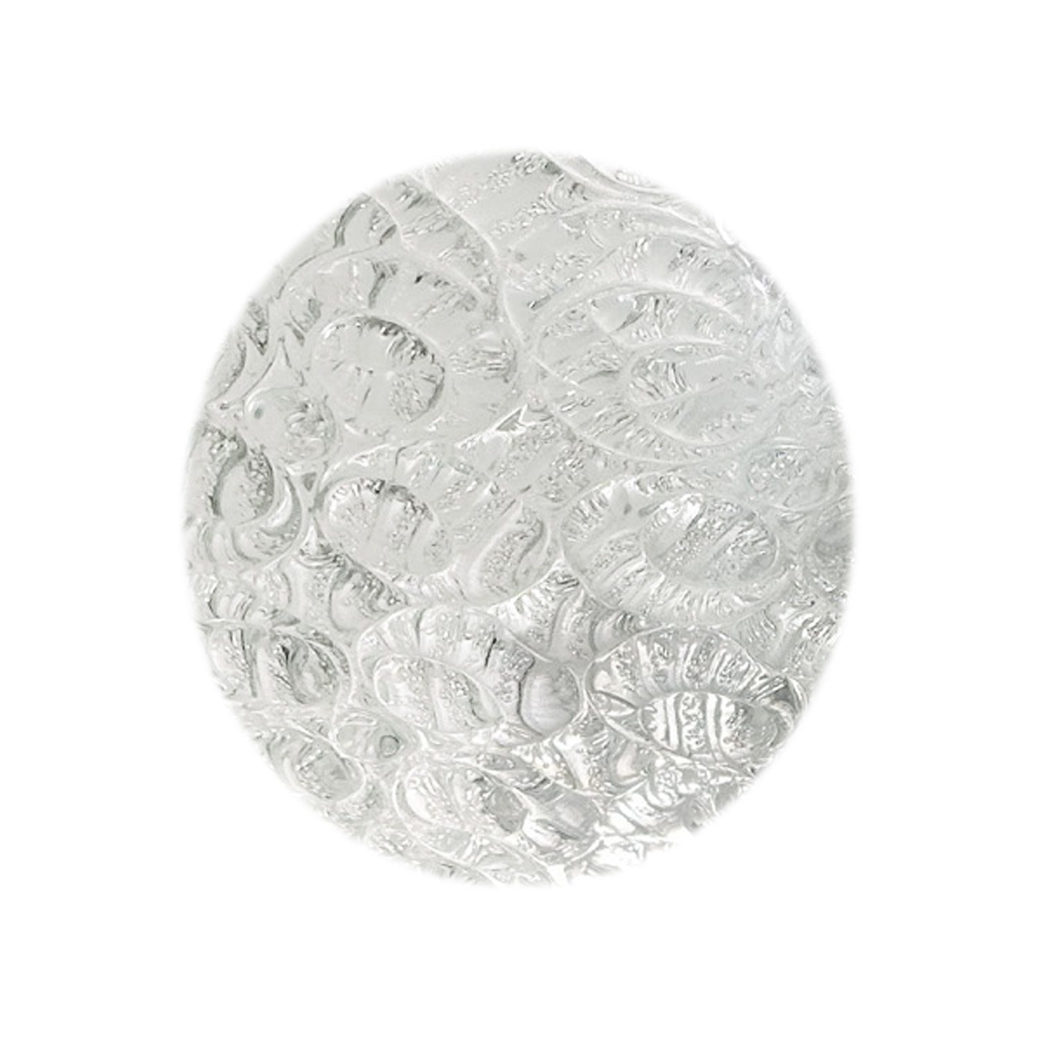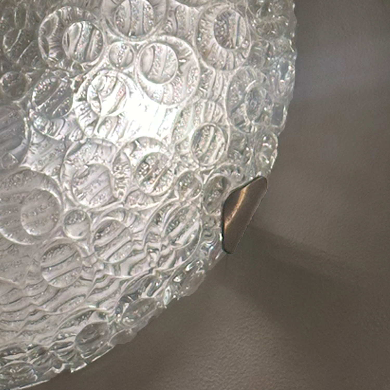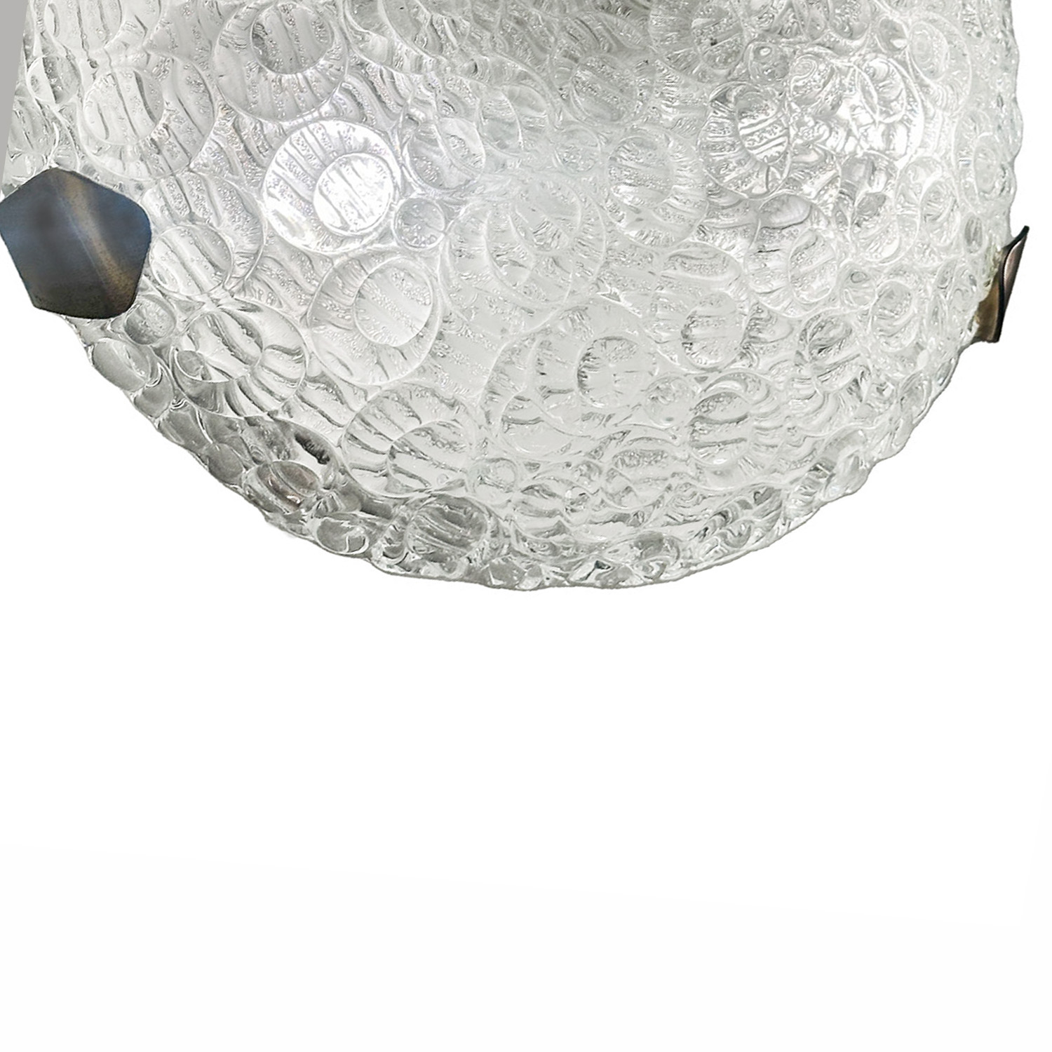 Concentric circles dot the surface of this glass and chrome flush mount fixture by Austrian lighting company J. T. Kalmar. The three-lamp fixture is the perfect light for a foyer or powder room.