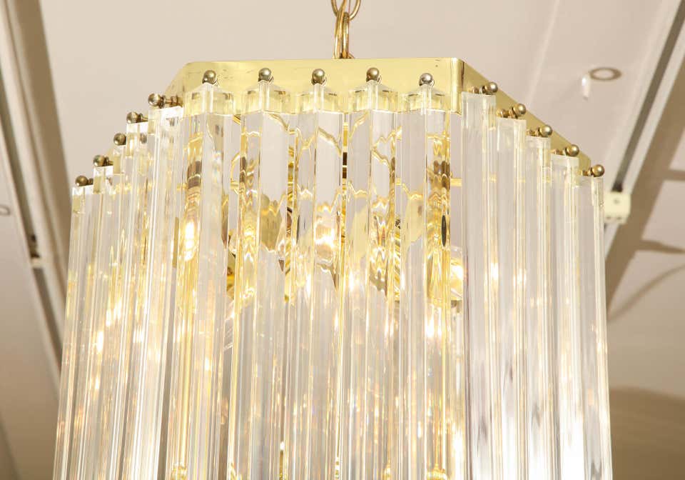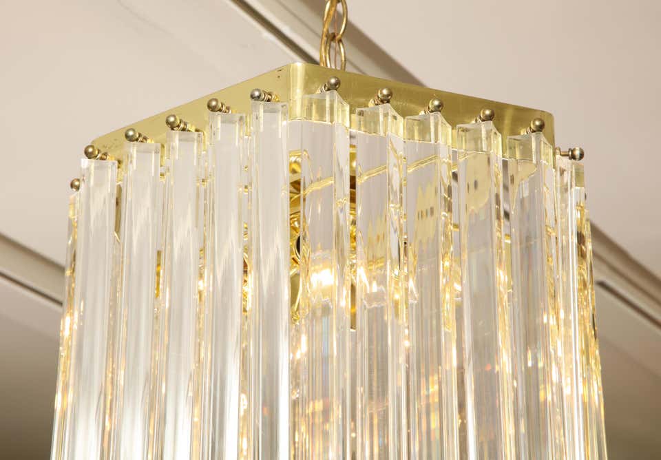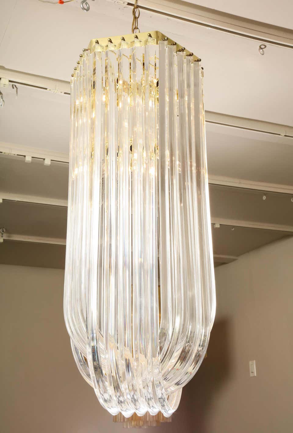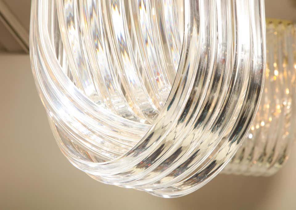Long Mid-Century Curved Lucite Ribbon Chandelier in Brass