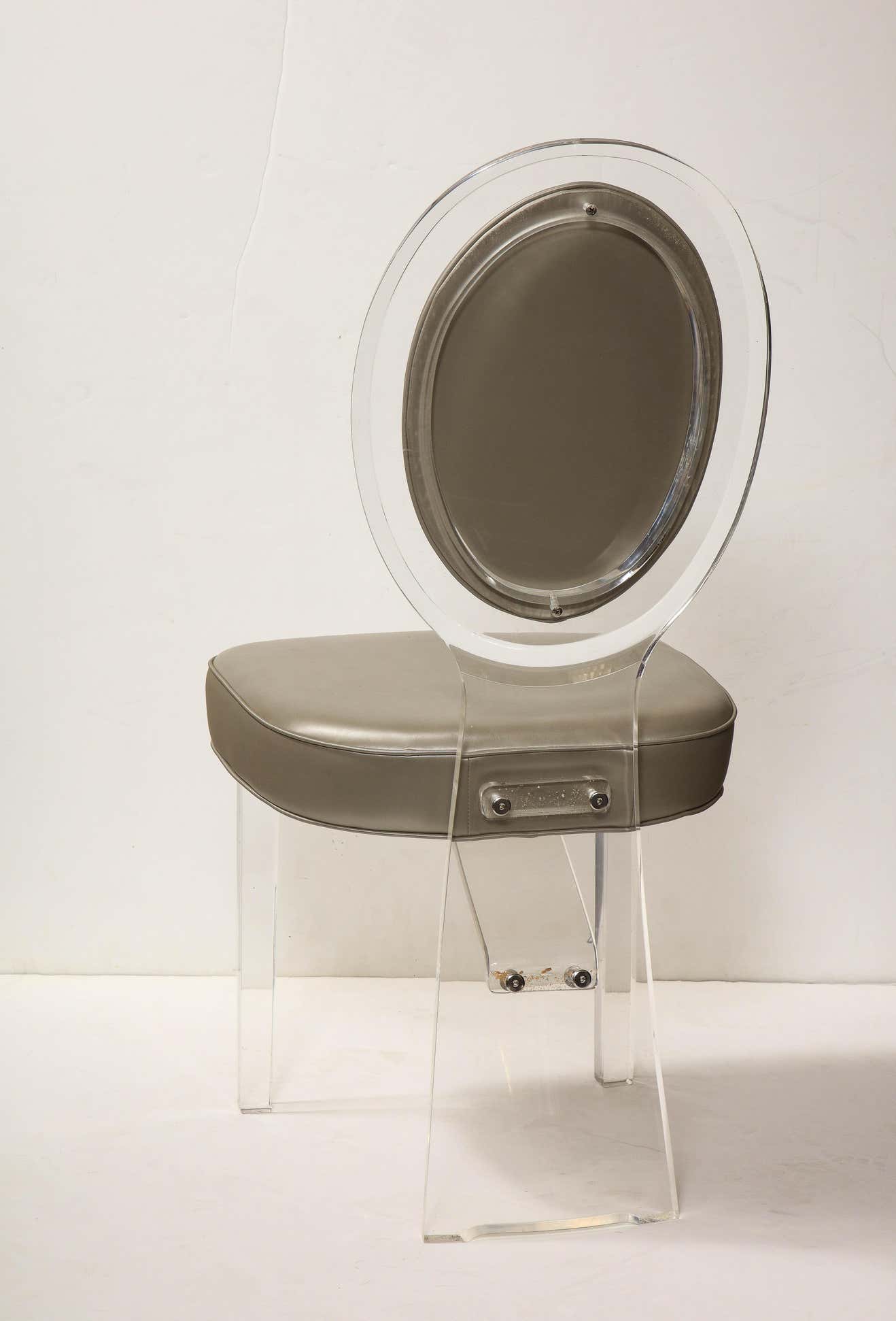 Lucite Balloon Back Chair with Gray Leather Upholstery