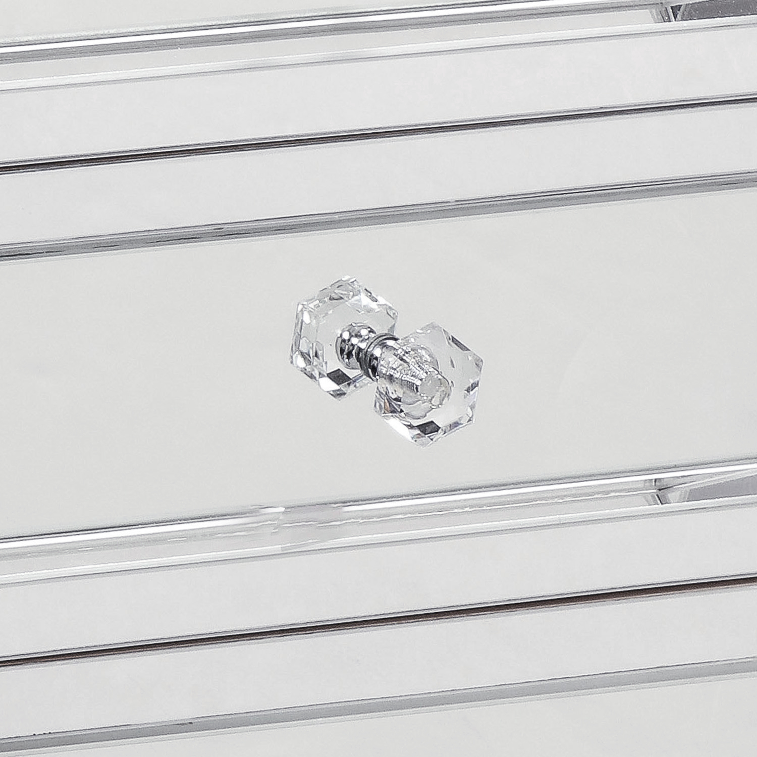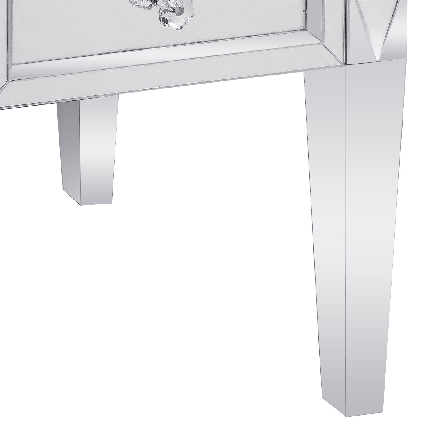 Pair of mirrored 3-drawer nightstands with diamond cut front and chrome and crystal pulls. All drawers are 12-1/2" wide and 5-1/4" deep in The interior finish is maple. By Venfield The pair is currently available as shown in our NYC showroom. Custom orders are also available for different sizes and mirror finishes.